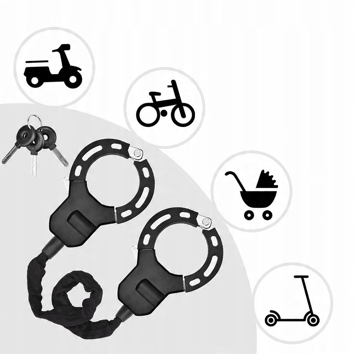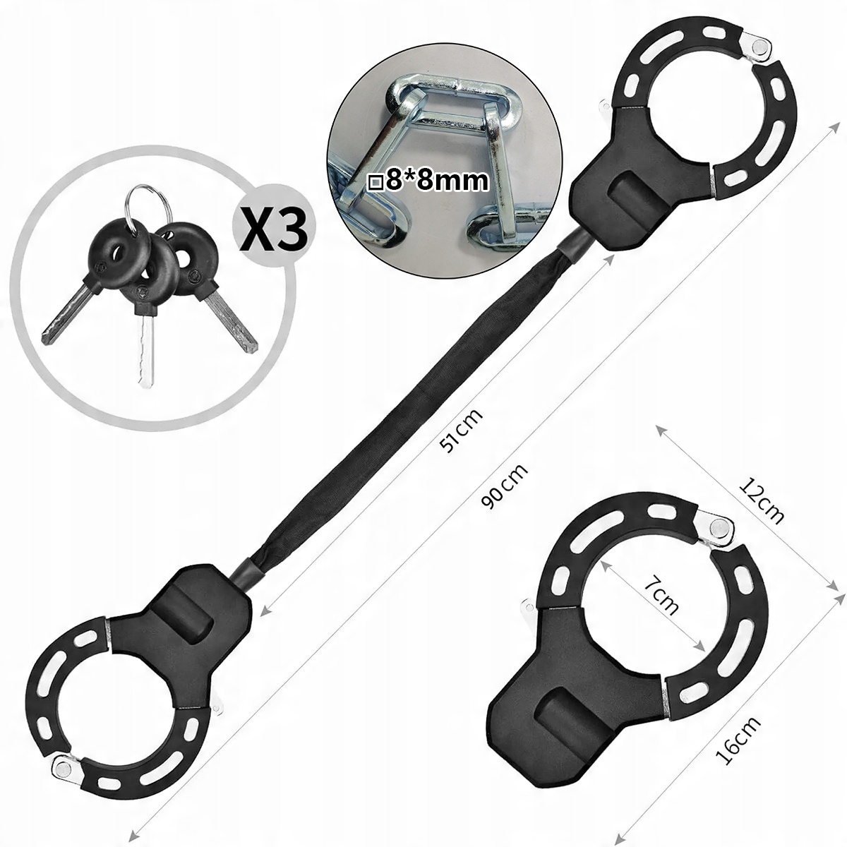 ручний замок виготовлений із загартованої сталі, загальна довжина замка ланцюга становить (приблизно) 90 см, а довжина частини ланцюга - (приблизно) 50 см. Наш ланцюг - це квадратний ланцюг з розміром 8 мм * 8 мм, виготовленого з спеціальної сталі, що в 10 разів сильніший за гірші круглі ланцюги! Ідеально підходить для електричних скутерів, електричних велосипедів, велосипедів та сходи, дитячих колясків, мотоциклів, огорож та інших.