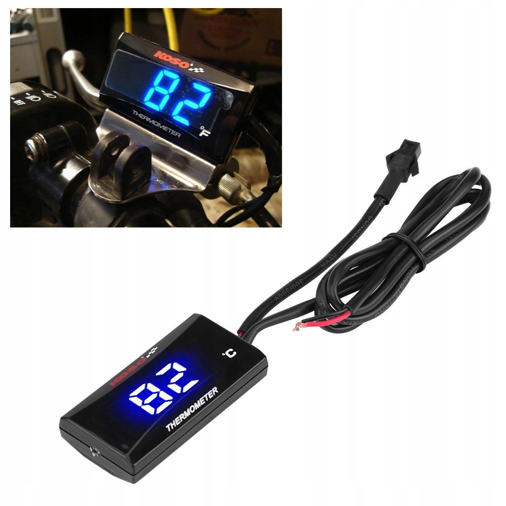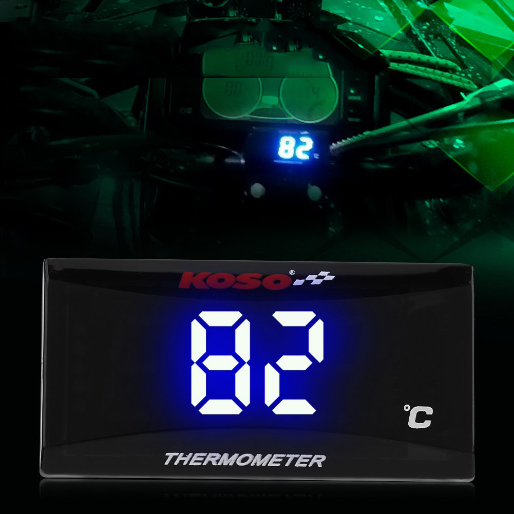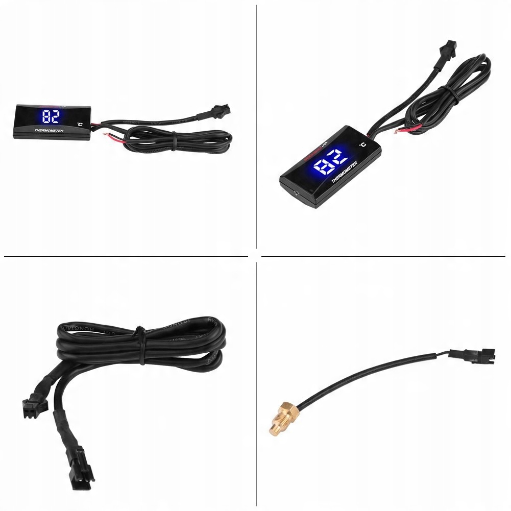 РК-екран високої чіткості ----- Абсолютно новий цифровий мотоциклетний термометр, РК-дисплей високої роздільної здатності, синій світлодіодний індикатор, точне відображення даних про температуру. Цифровий вимірювач температури води зі світлодіодним підсвічуванням дозволяє легко зчитувати дані навіть вночі.