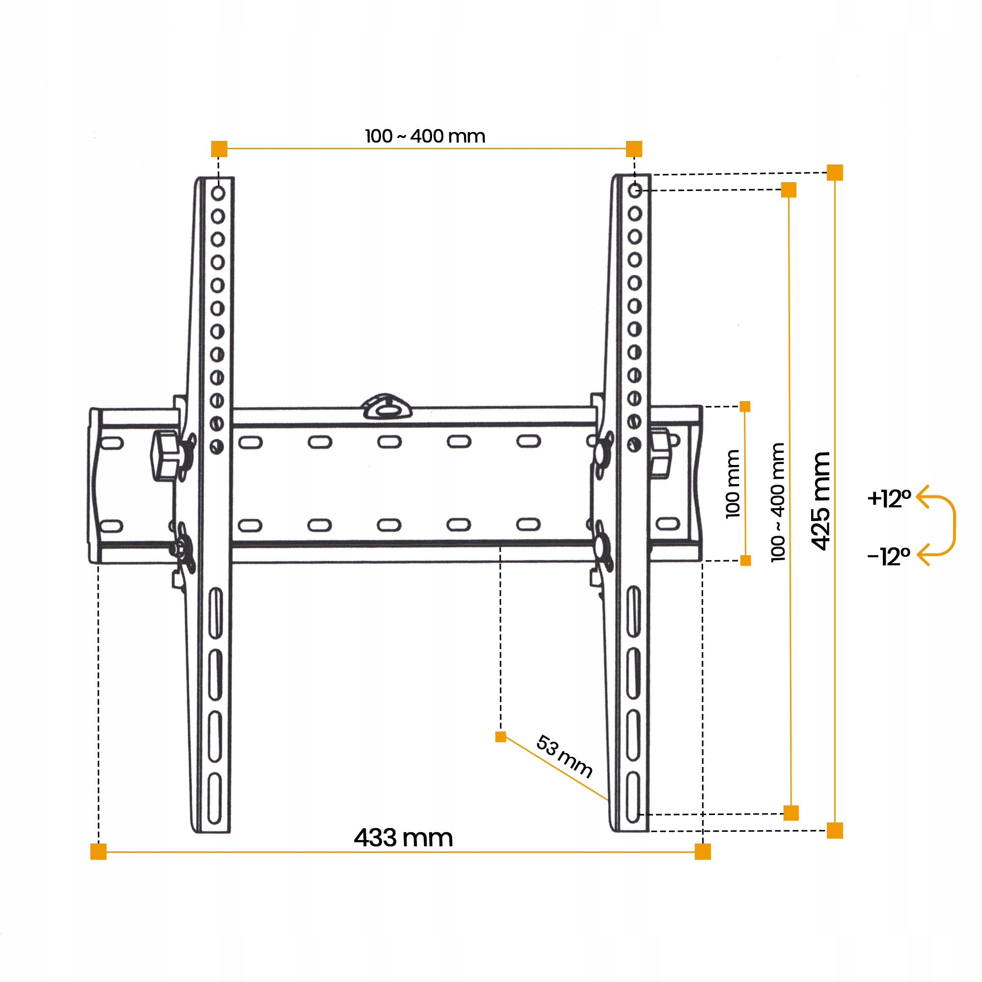 Вішалка дозволяє плавно регулювати нахил - вгору-вниз від 12° до -12°. Завдяки цьому ви можете легко відрегулювати положення телевізора так, щоб вам було зручно, незалежно від того, відпочиваєте ви на дивані чи тренуєтеся перед телевізором.