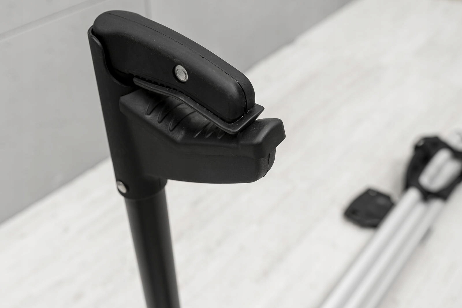 Закріпити ваш велосипед легко та швидко - прикріплення тримача рами велосипеда та прикріплення коліс відбувається миттєво. М'які накладки щільно прилягають до рами велосипеда, мінімізуючи ризик її подряпин. Суцільні ручки з швидкознімними затискачами забезпечують стабілізацію колеса, а алюмінієва профільована вертикальна ручка захищає велосипед від падіння.