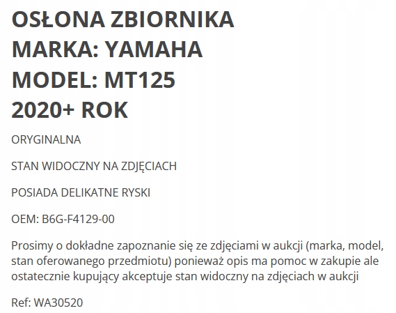 КРИШКА БАКУ, БАК, ОБТІКНИК, БІК L YAMAHA MT125 MT 125 20+