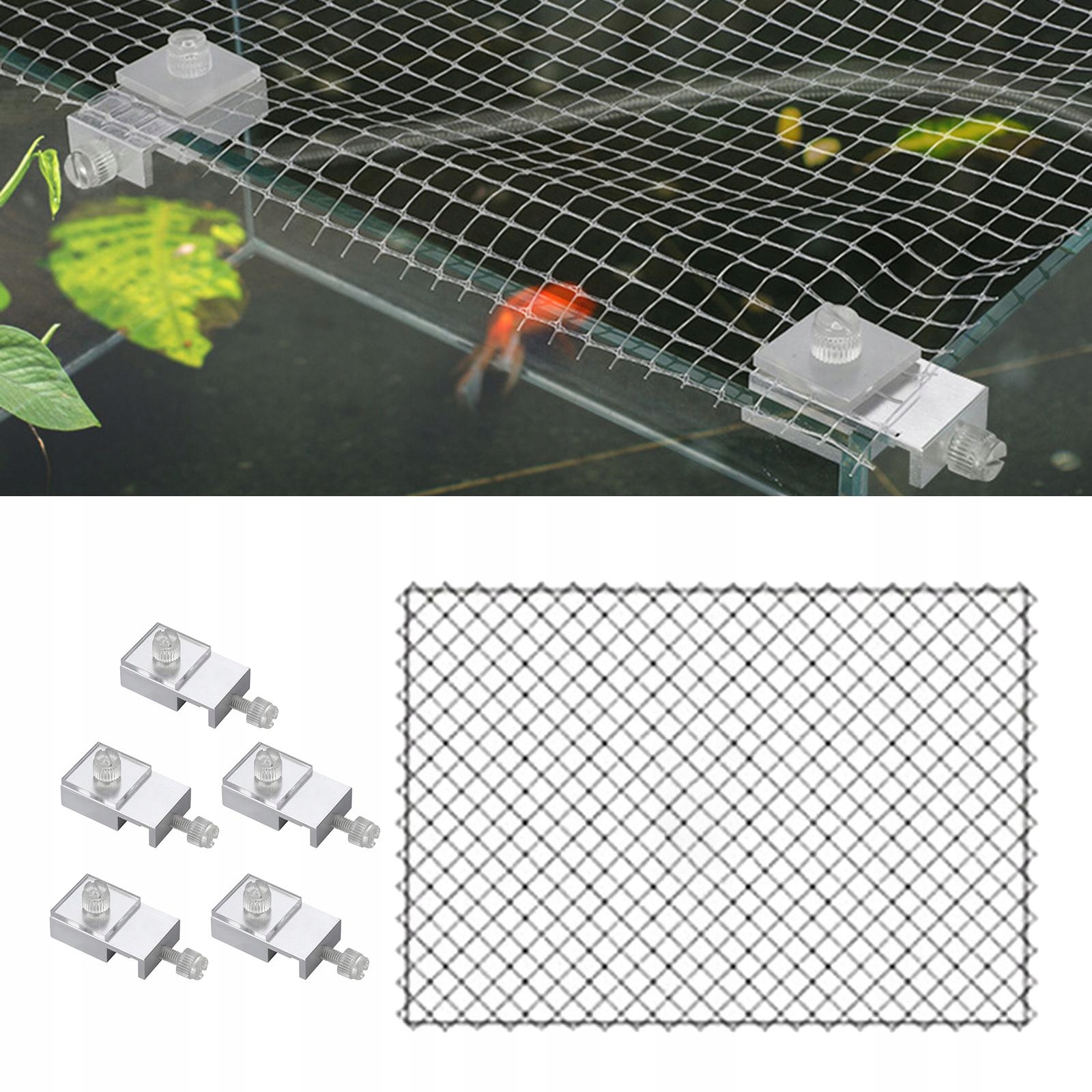 [Функція] Затиски для сітки, які запобігають стрибку, створені для запобігання вистрибуванню риби з акваріума та загибелі. Це хороший помічник, щоб не дати рибі втекти.