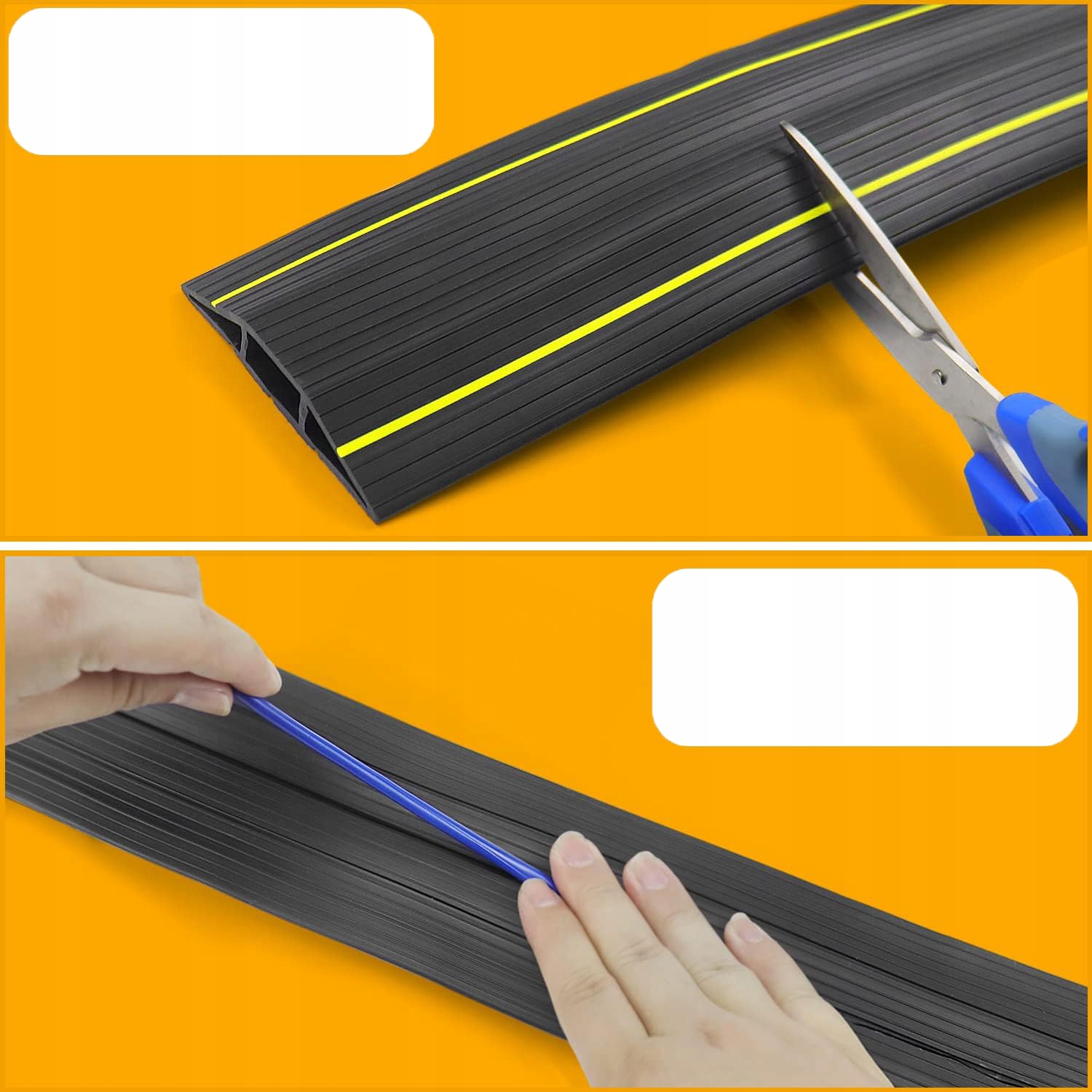 🔌Легко розслаблятися завдяки гнучкому ПВХ-матеріалу:Підлоговий кабельний канал зроблений із міцного, гнучкого ПВХ, який ефективно розгортається та нарізається до потрібного розміру та не має запаху. (Примітка: три канали цього захисного кабелю невідкриті. Їх можна легко відкрити ножицями чи ножем.)