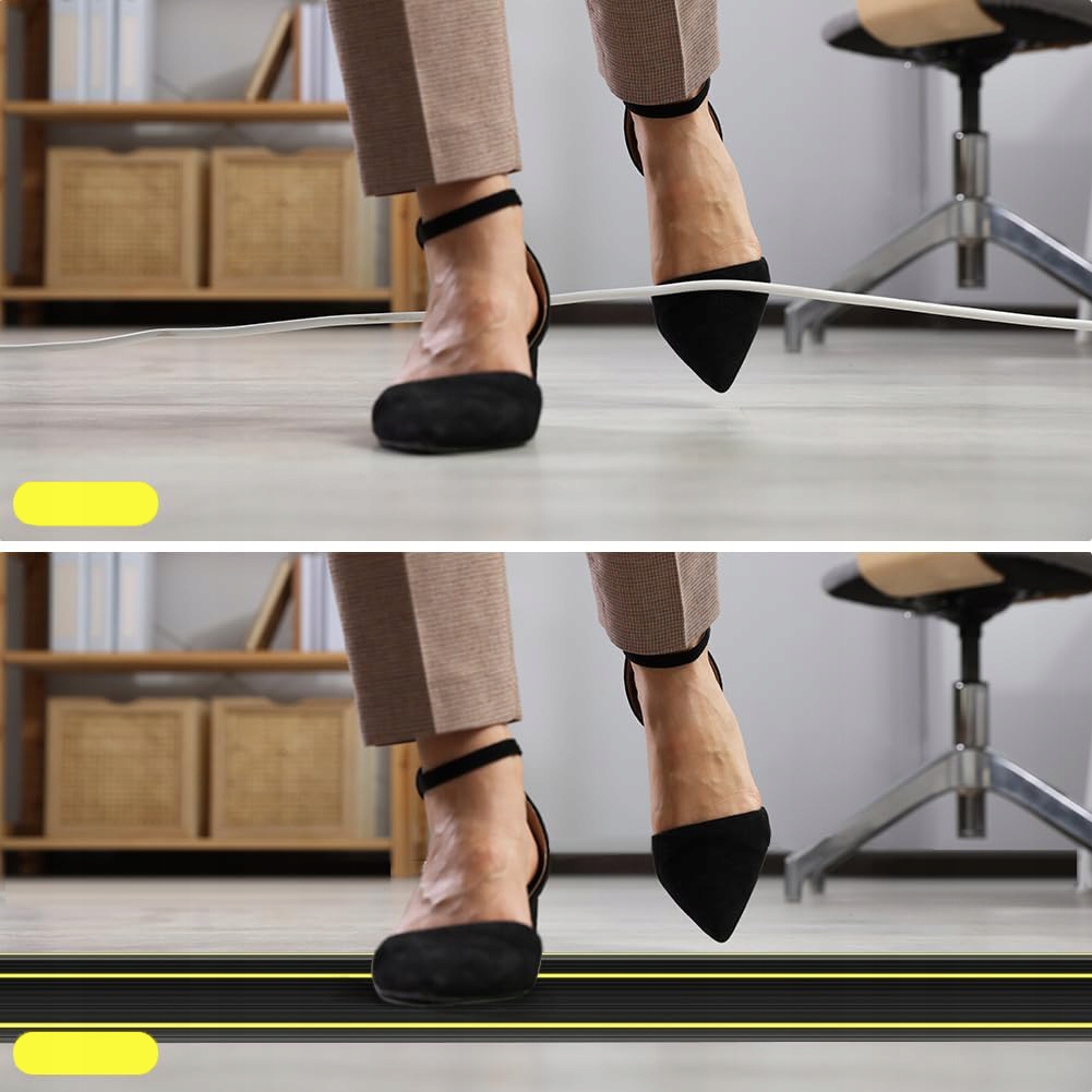 🔌Приховування та захист кабелю:Чорний кабельний міст для підлоги може ефективно приховати та захистити кабелі, дроти та кабелі, допомагаючи підтримувати поверхню підлоги чистою та безпечною. Таким чином, він може ефективно запобігти впливу зовнішнього середовища на кабелі, дроти та шнури.