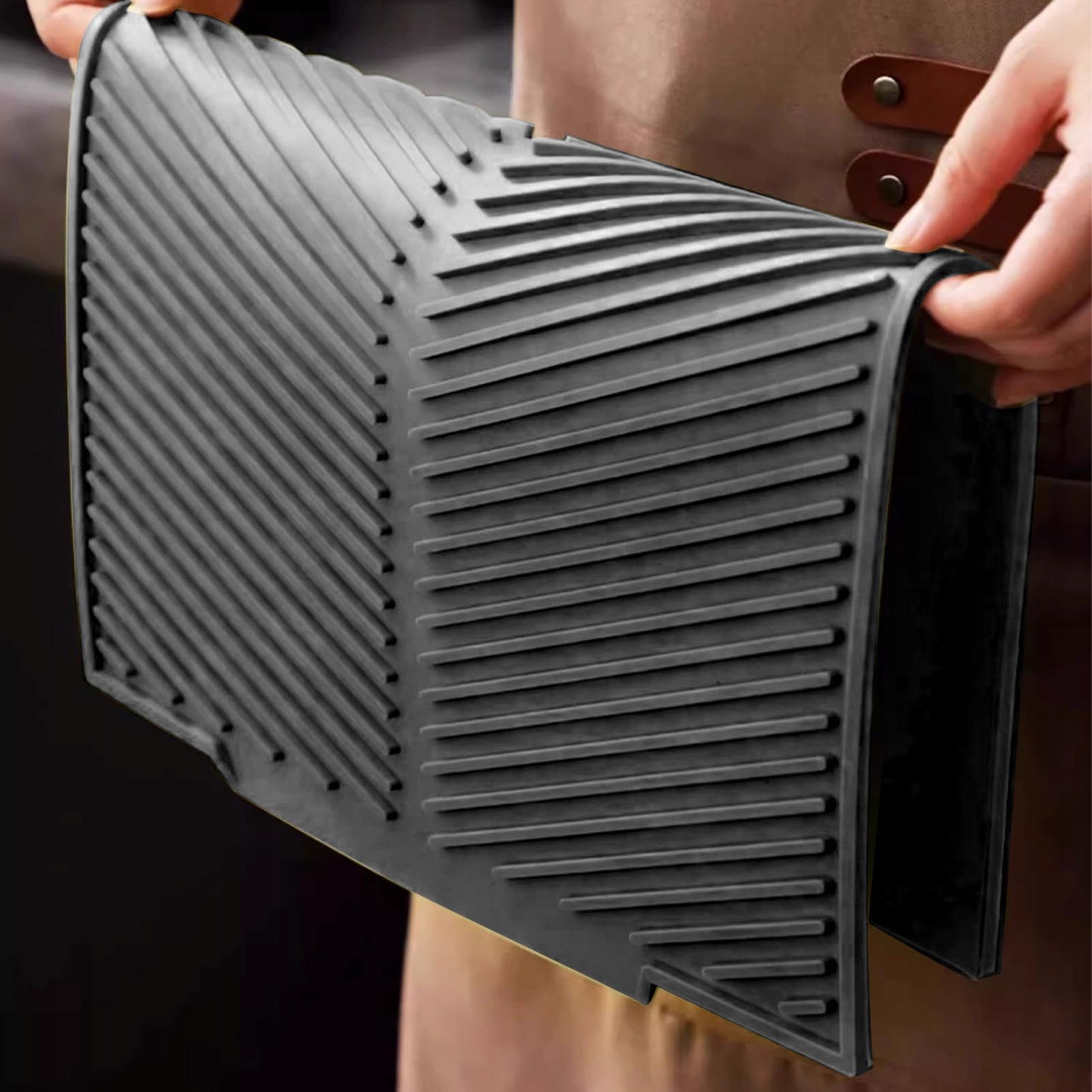5. ПВХ Матерія: килимок для розливу кави виготовлений з м'якого матеріалу з ПВХ, призначений для скидання без зміщення. Забезпечує доттермінальне та економічне рішення для кавових сеансів або висихання страв.