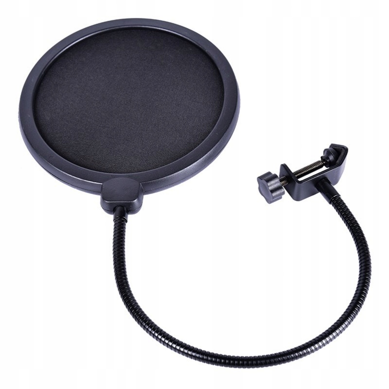 NN POP 01 - класичний нейлоновий поп-фільтр для мікрофона з подвійною гнучкою тканиною, натягнутою на коло з пластику, з гнучким плечем у вигляді т.зв. гусяча шия та натискне кріплення для мікрофонної стійки.