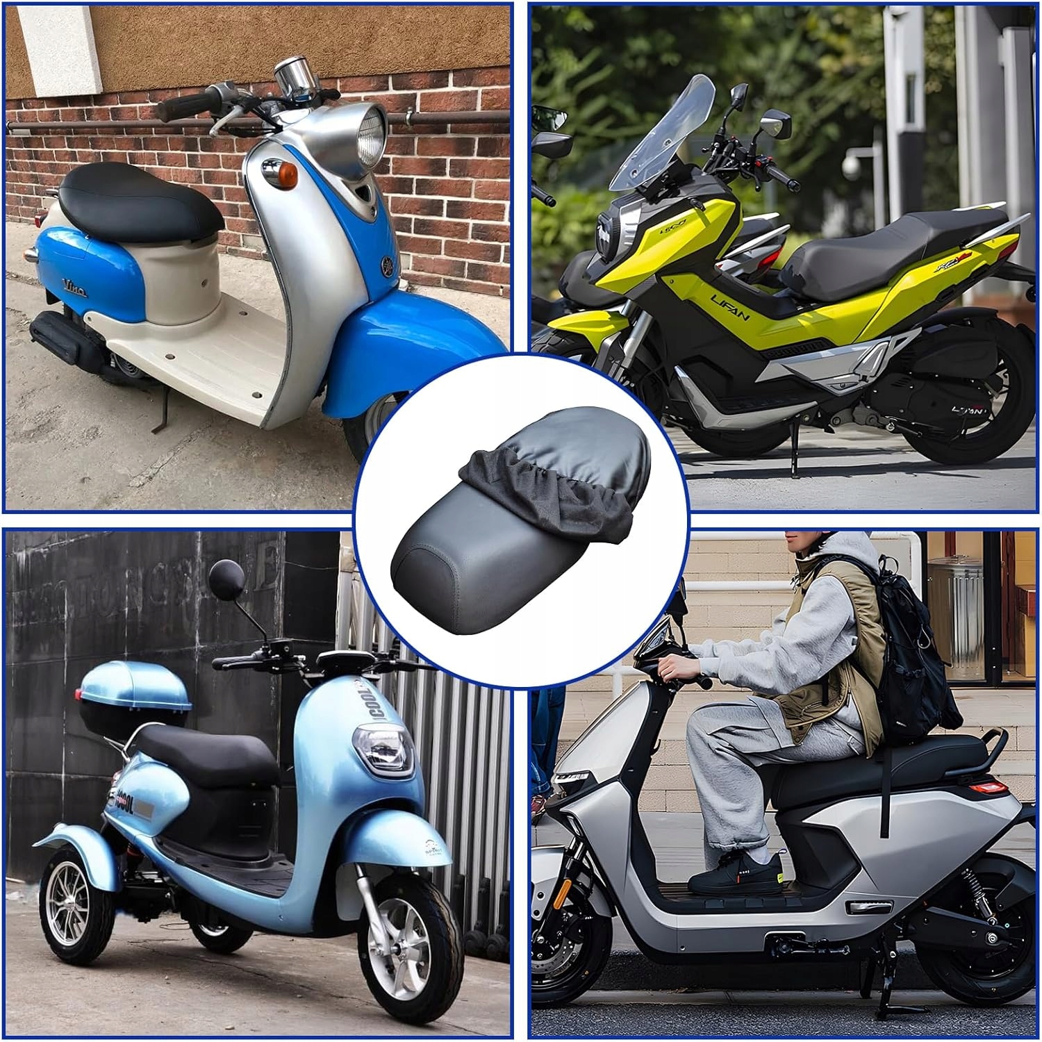 підходить для більшості моделей скутера та мопеда. Гнучка оздоблення та пристосована форма роблять установку швидкою, а кришка добре дотримується сидіти.