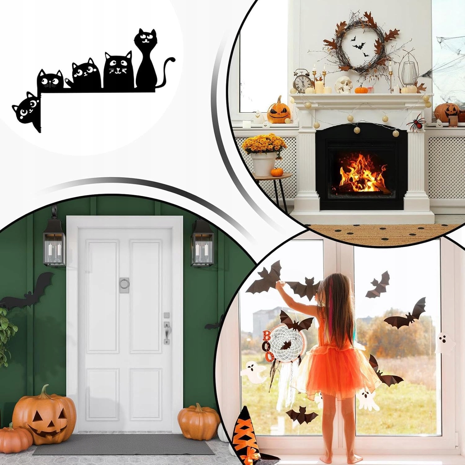 Зустрічайте своїх гостей і гостей на святкуванні Хеллоуїна нашою сміливою двосторонньою дверною кришкою для котів. Ця весела й химерна прикраса додає моторошного відтінку будь-яким дверям і обов’язково порадує кожного, хто зустрінеться з ними.