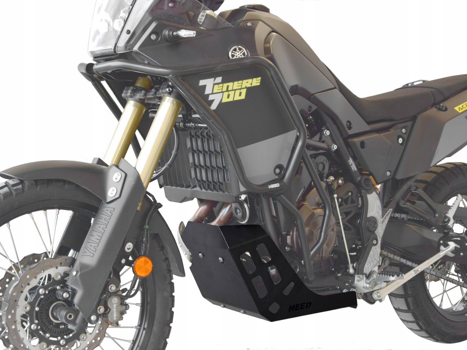 Міцна сталева кришка двигуна HEED, розроблена спеціально для мотоциклів Yamaha Tenere 700 зі стандартом викидів EURO5 (з 2021 року), включаючи версію EXTREME. Виготовлений з високоякісної сталі товщиною 2 мм, пофарбований порошковою фарбою в міцний чорний колір. Він має 6 точок кріплення, які гарантують стабільну та безпечну установку. Ефективно захищає двигун і випускні колектори від механічних пошкоджень під час руху по складній місцевості.