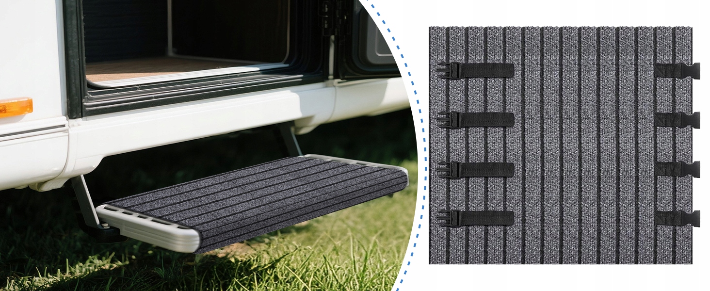 Протиковзкі килимки для автофургону мають вертикальну структуру поверхні, яка допомагає видалити скошену траву, бруд та інший бруд з підошви вашого взуття, таким чином зберігаючи салон вашого каравану чистим і охайним. акуратно.