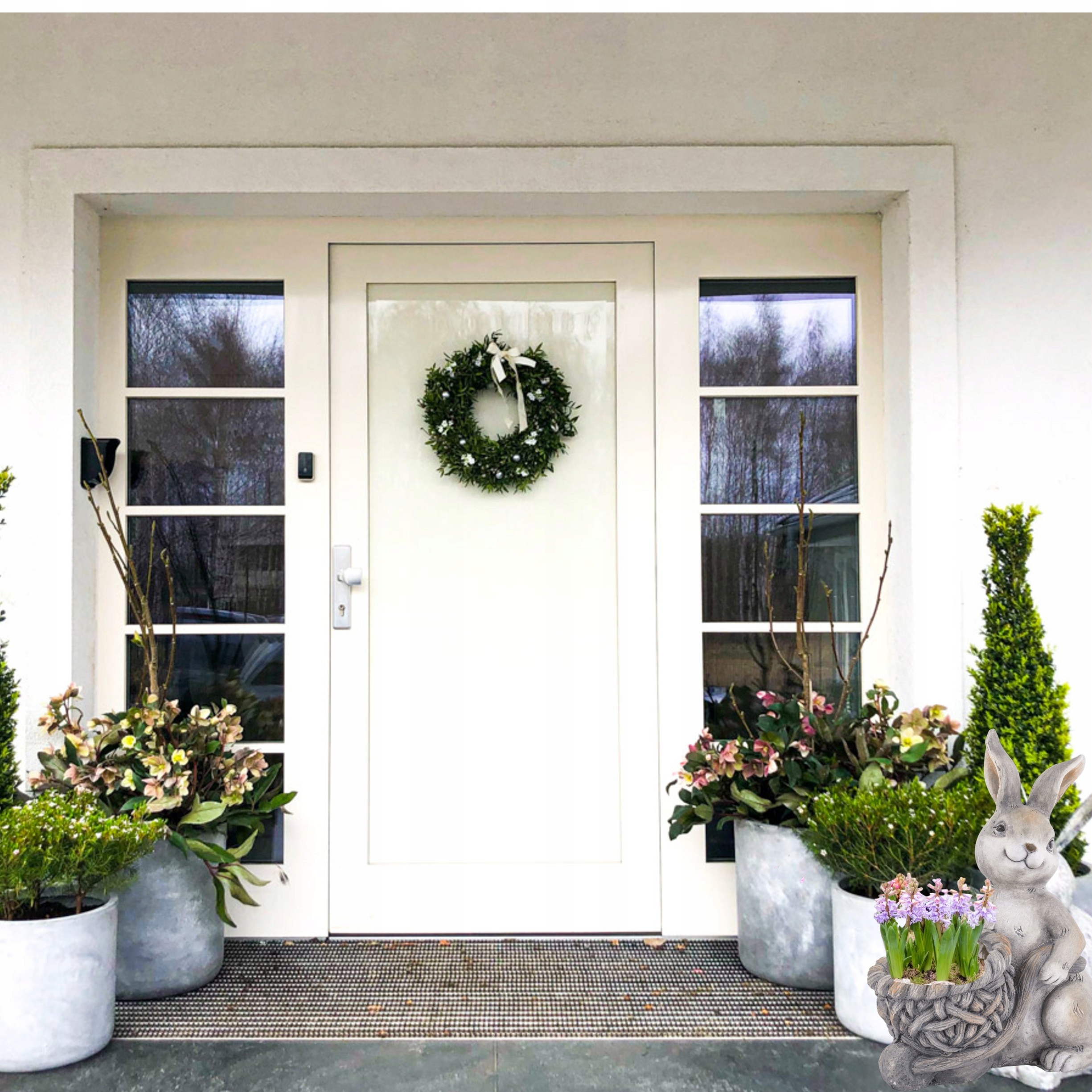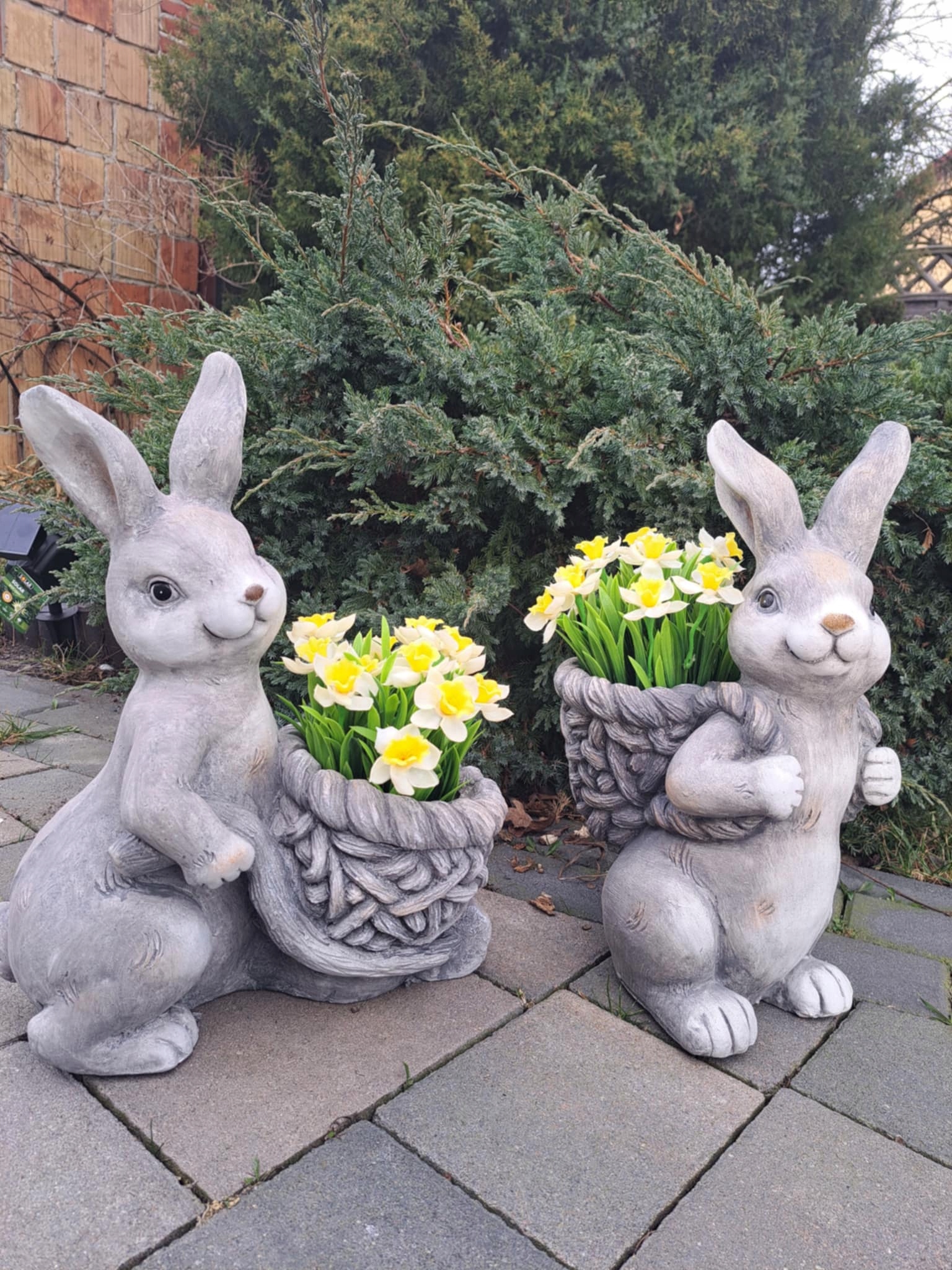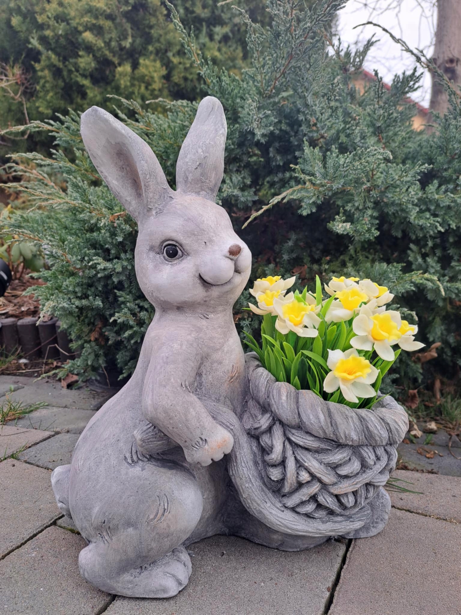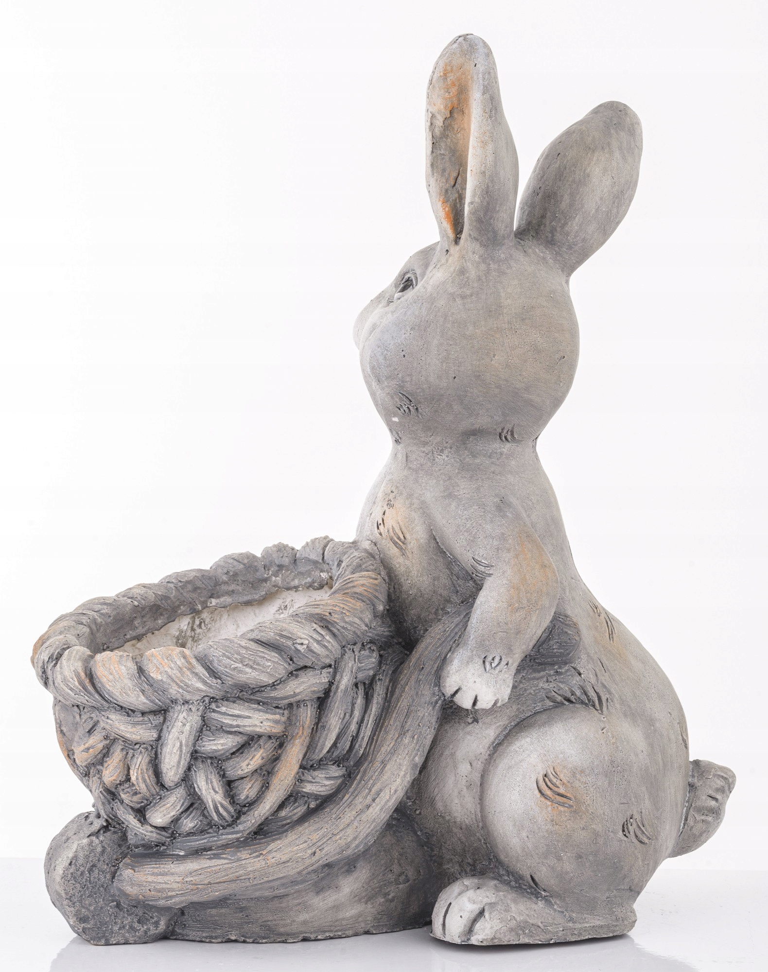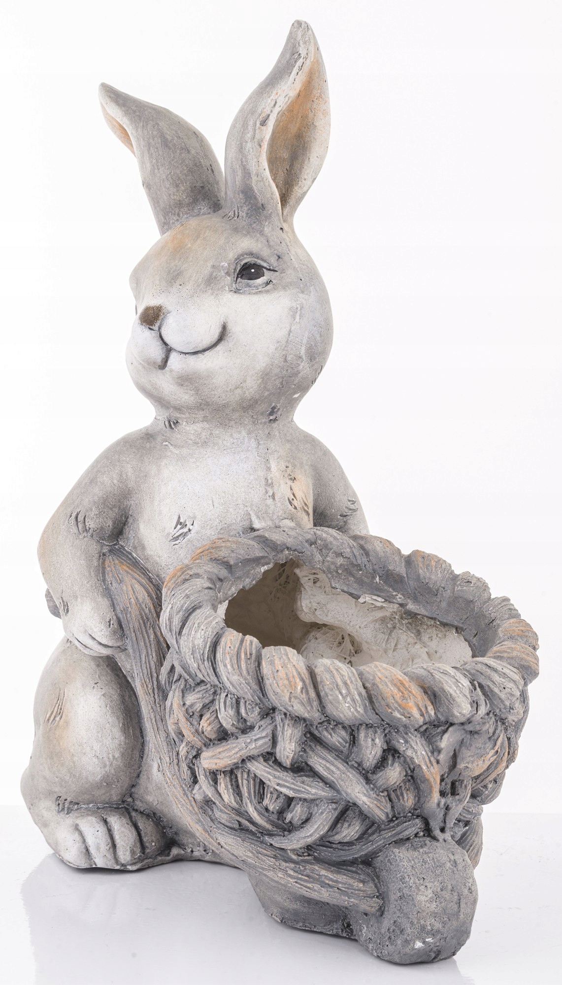 декоративний зайчик -ущільнена кришка з кошиками для горщиків. Велика прикраса, яка буде працювати як доповнення до великодньої композиції, але також виконає роль року -зсува прикраси комоду, широкого підвіконня або столу в їдальні. На терасі, у альтанці, а також перед входом у будинок, у поєднанні з барвистою квіткою це буде виглядати вражаюче, видаливши.
