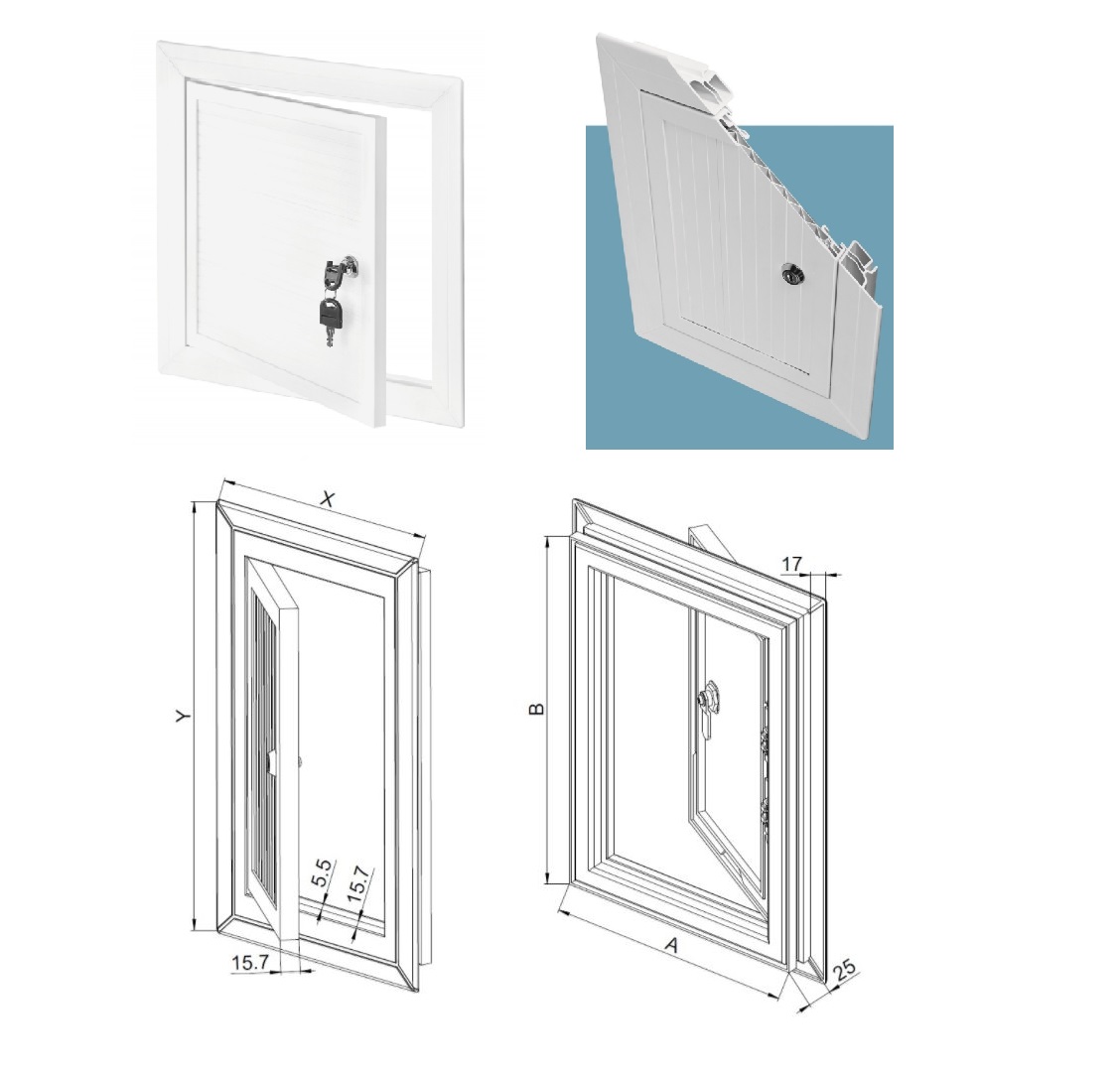 Кришки камери MKOM забезпечують легкий доступ до стінних і стельових оглядових отворів і ніш, що містять газові лічильники, лічильники води, електролічильники, домашні гідранти тощо. Виготовлені у великих розмірах, вони також дозволяють розвивати простори, що містять великі розподільні щити. , напр. розподільники центрального опалення МКОМ також можна використовувати в якості настінних і стельових люків. Всі кришки оснащені замком на ключ. Кришки МКОМ виготовлені з ПВХ. Їх камерна структура робить виріб жорстким і міцним, а також забезпечує відмінну тепло- і звукоізоляцію. Зверніть увагу, що кришка не працює за принципом відкидних дверей, що відкриваються. Після відкриття замка центр решітки знімається.