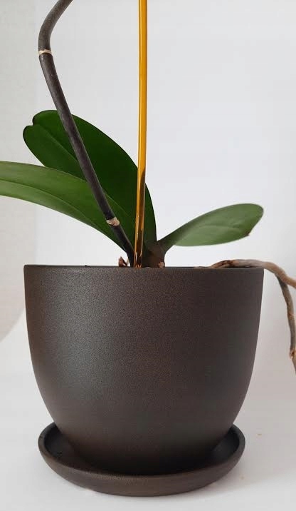 КЛАСИЧНИЙ КЕРАМІЧНИЙ ГОРЩИК З КРУГЛОЮ КОРИЧНЕВОЮ ПІДСТАВКОЮ, МАТОВИЙ