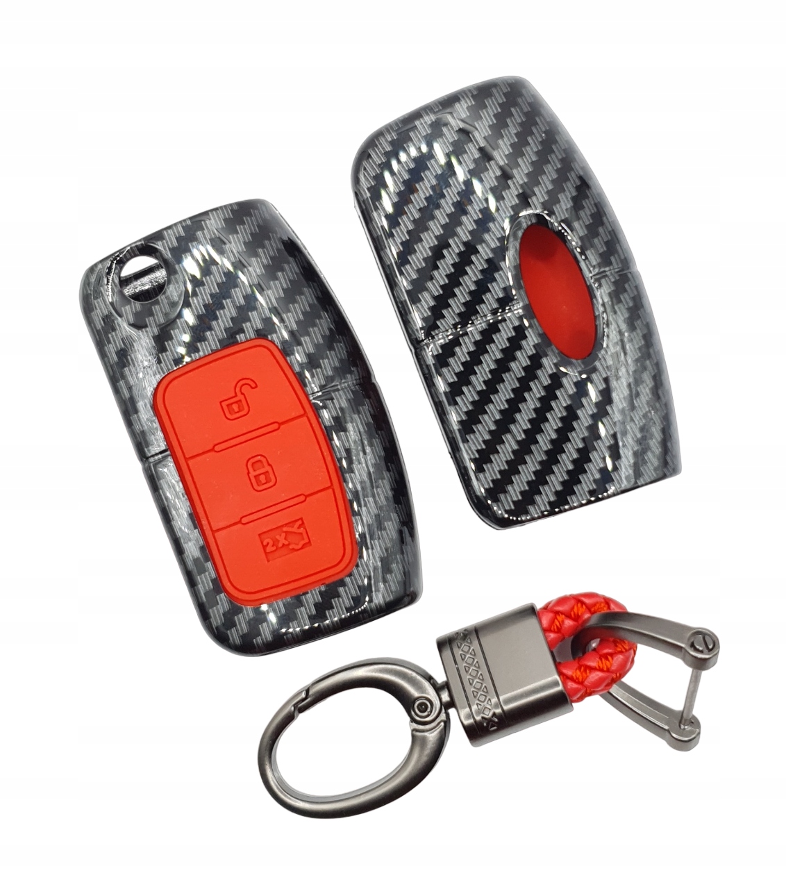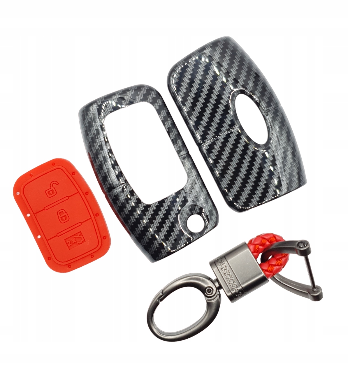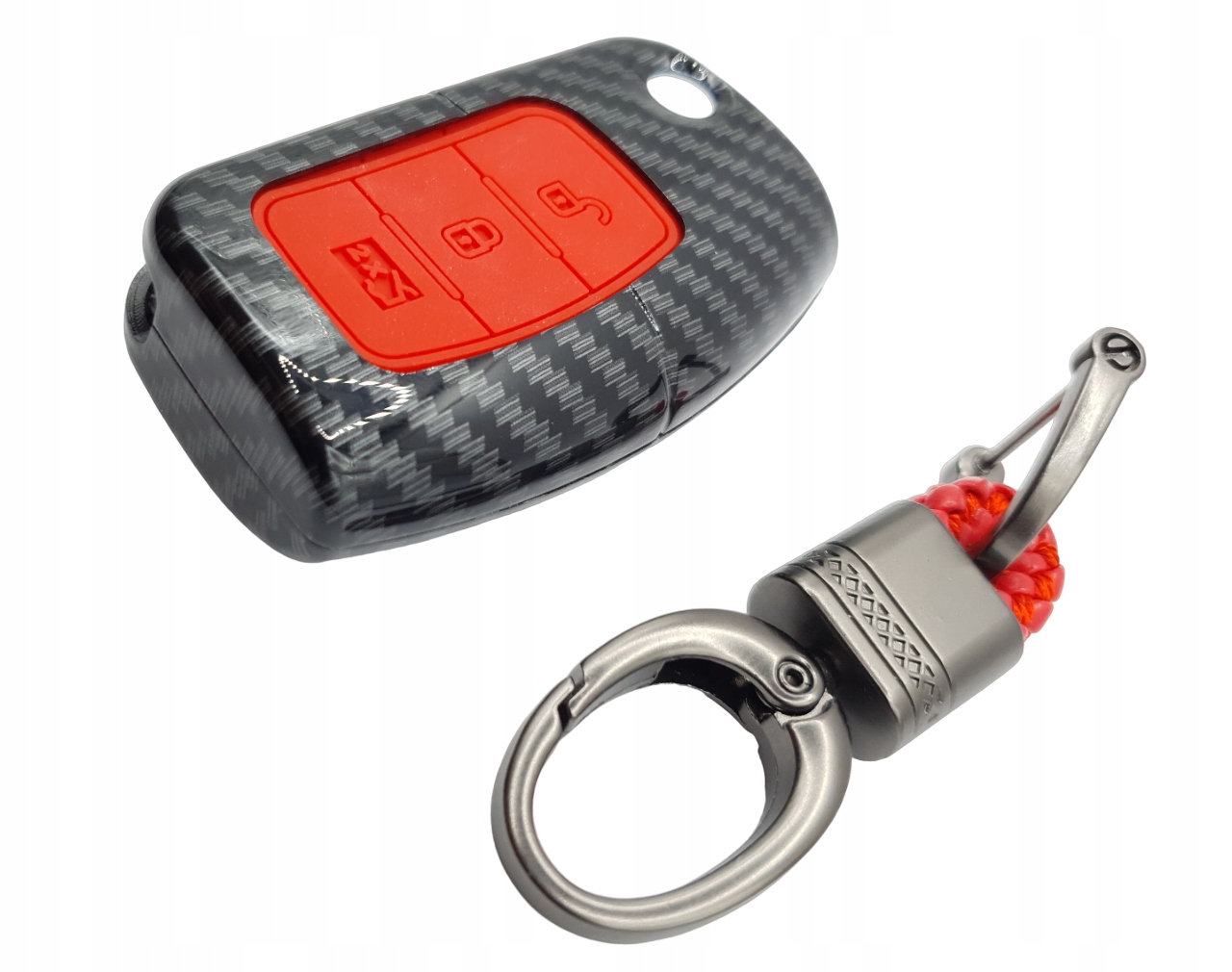 Пропозиція включає чохол, чохол для головної версії ключа з карбонового ABS матеріалу з червоною силіконовою накладкою на кнопку та карабін для моделей: