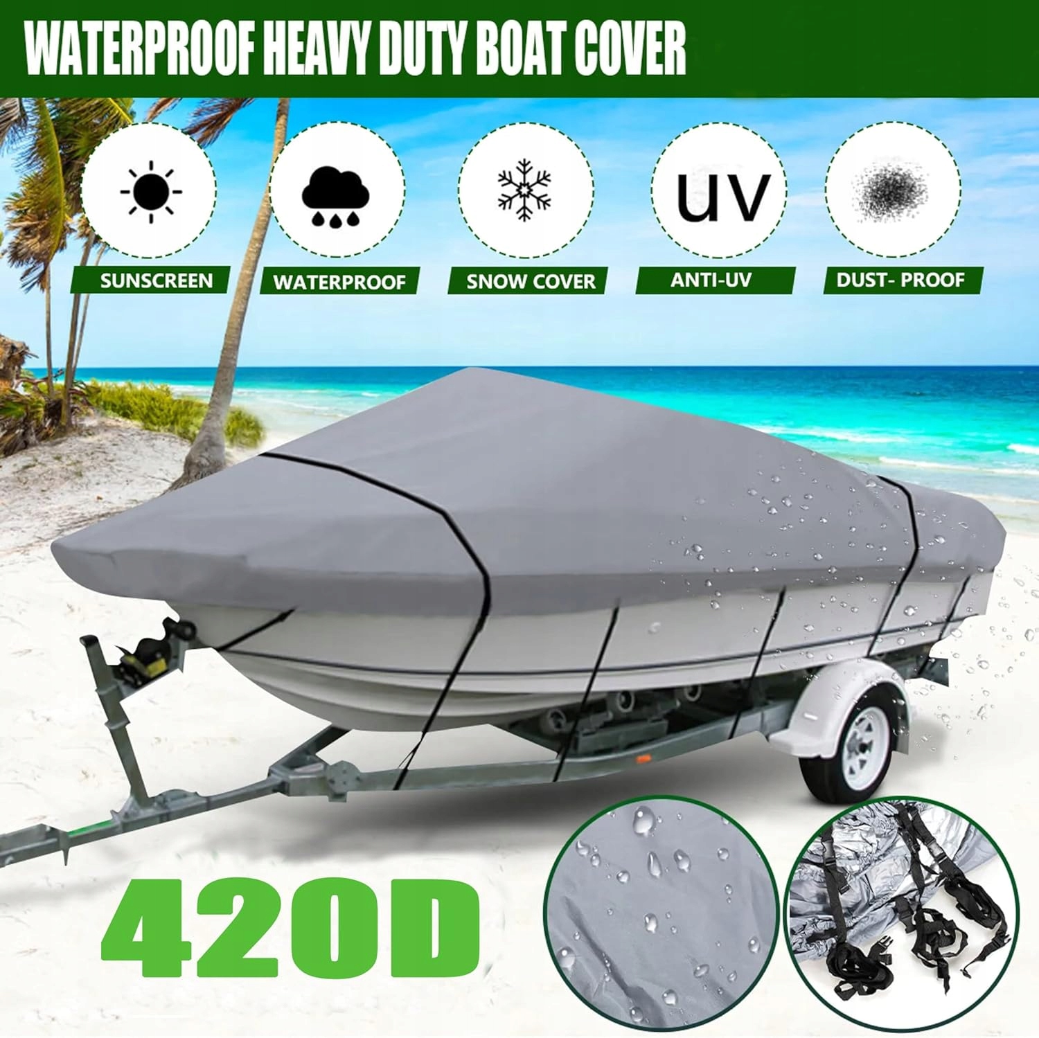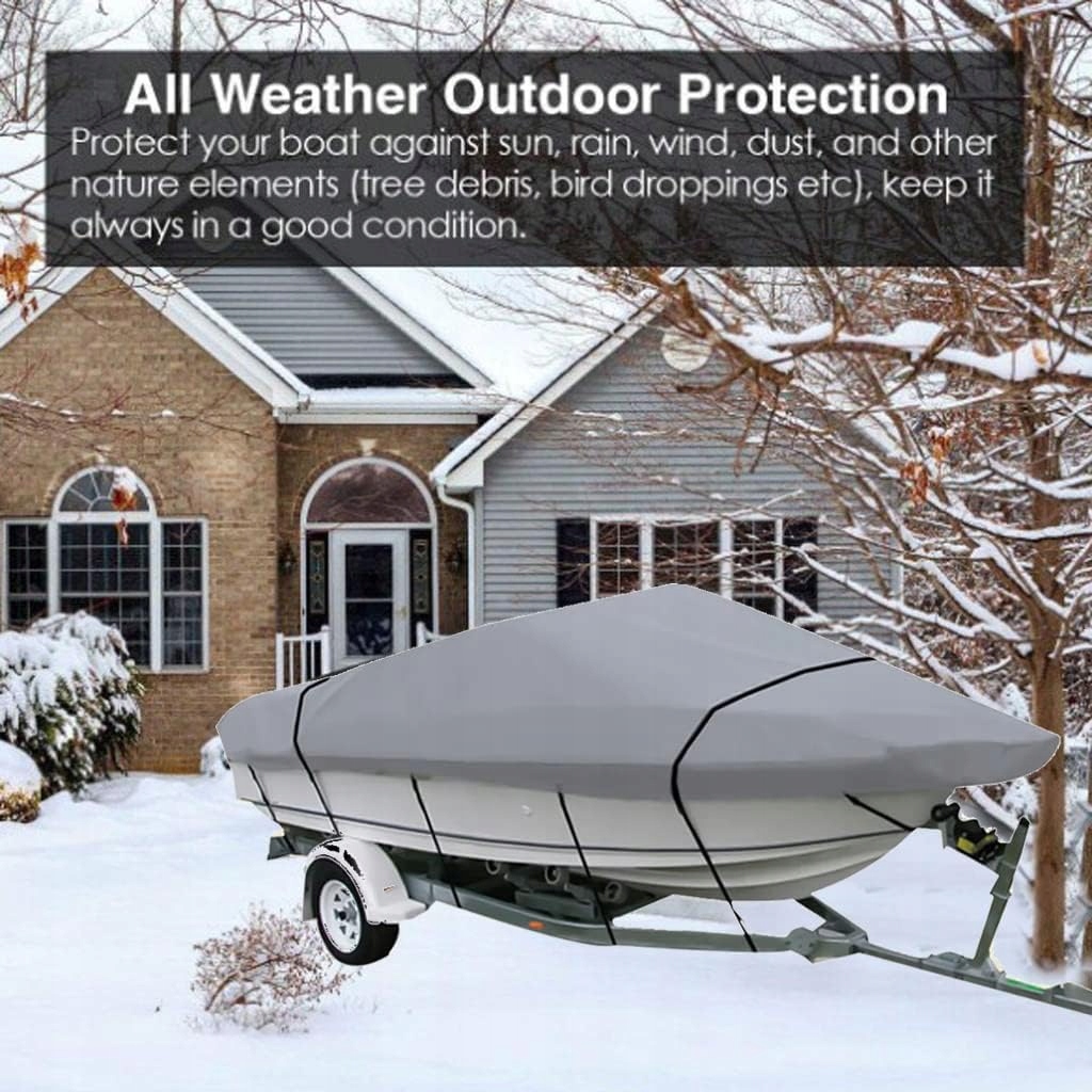 - Весь захист від погодних умов: наше високоякісне покриття човна захищає човен від складних погодних умов протягом року, має хорошу товщину та відмінну міцність кольору. Кришка човна оснащена захистом від УФ -випромінювання, старіння та інших функцій, що захищають ваш човен від сонця, вітру, пилу та інших природних елементів