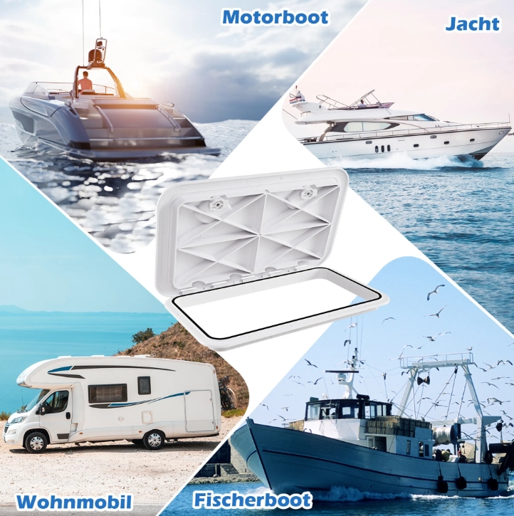 Цей універсальний люк підходить не лише для моторні човни, яхти та рибальські човни, а також для кемперів та інших видів морського застосування. Стандартний розмір і прямокутна форма роблять його ідеальним для різних модифікацій колод.
