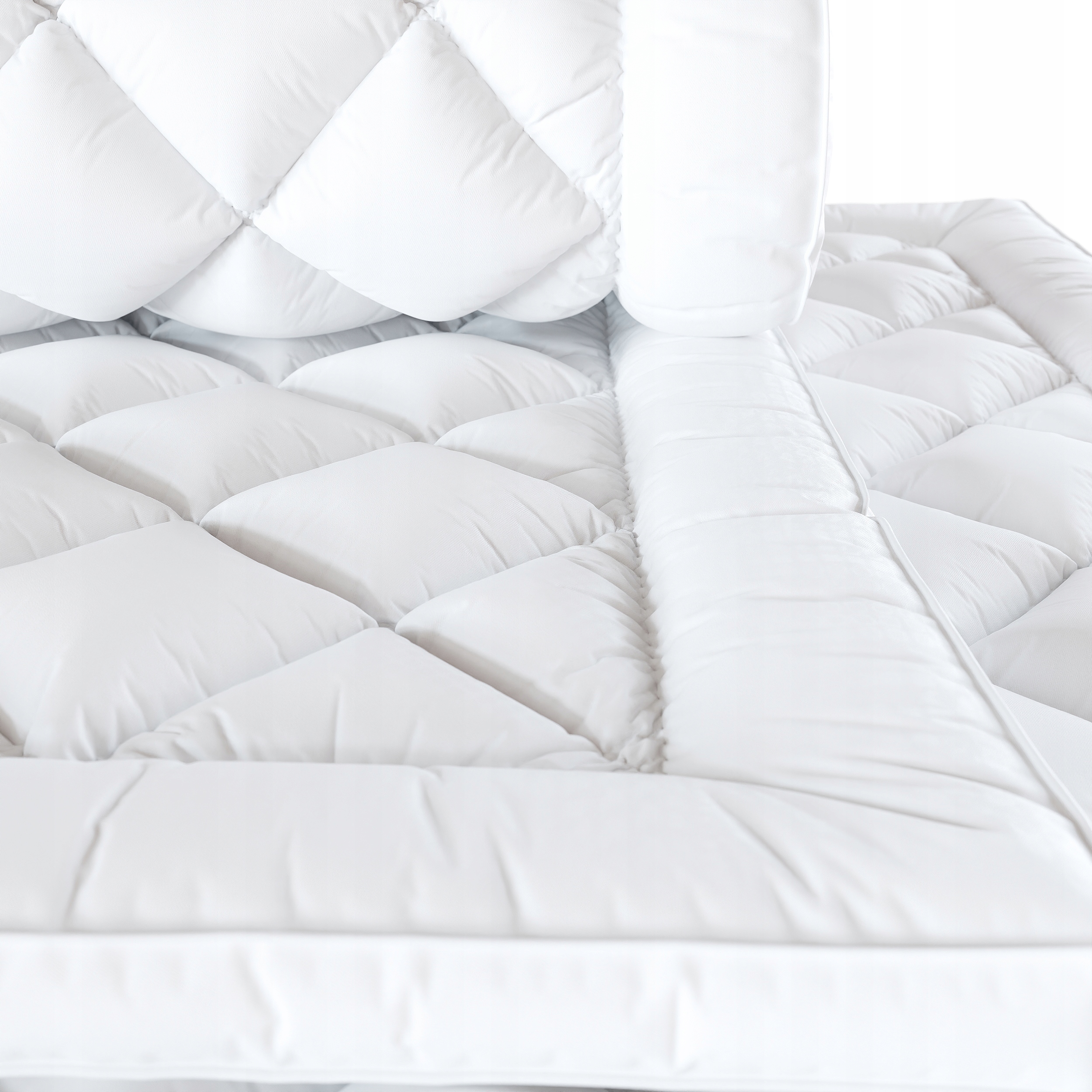 Змініть комфорт свого ліжка завдяки комфортному накладенню - м'яке, стьобане покриття, яке не тільки забезпечує відчуття розкішного сну, але й піклується про гігієну та чистоту вашого матраца. Виготовлений з високоякісної мікрофібри, відрізняється квадратним квілінгом, ідеально адаптується до тіла і додає приємного дотику дотику.