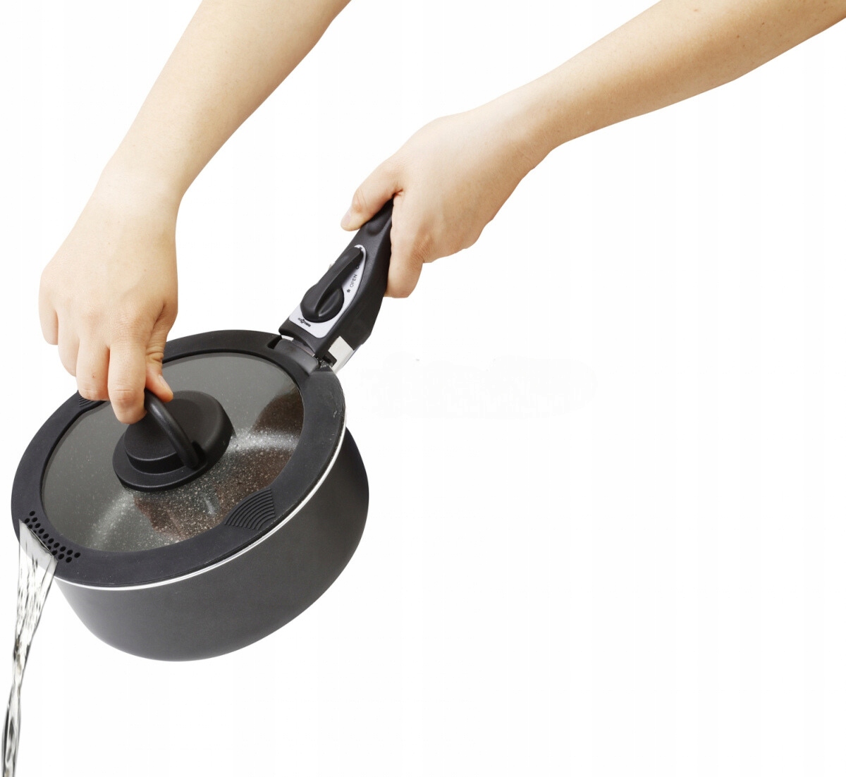 - Має отвір для ручки для кріплення каструль і сковорідок
