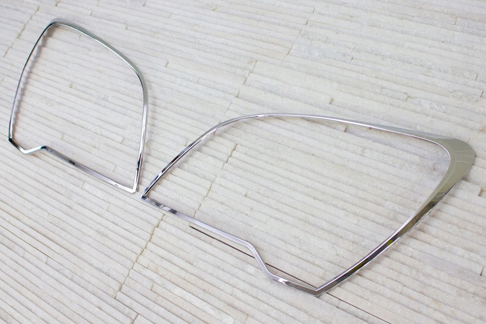 Виріб виготовлено з високоякісного хромованого ABS-пластику. У комплект входить набір з двох накладок на фари.
