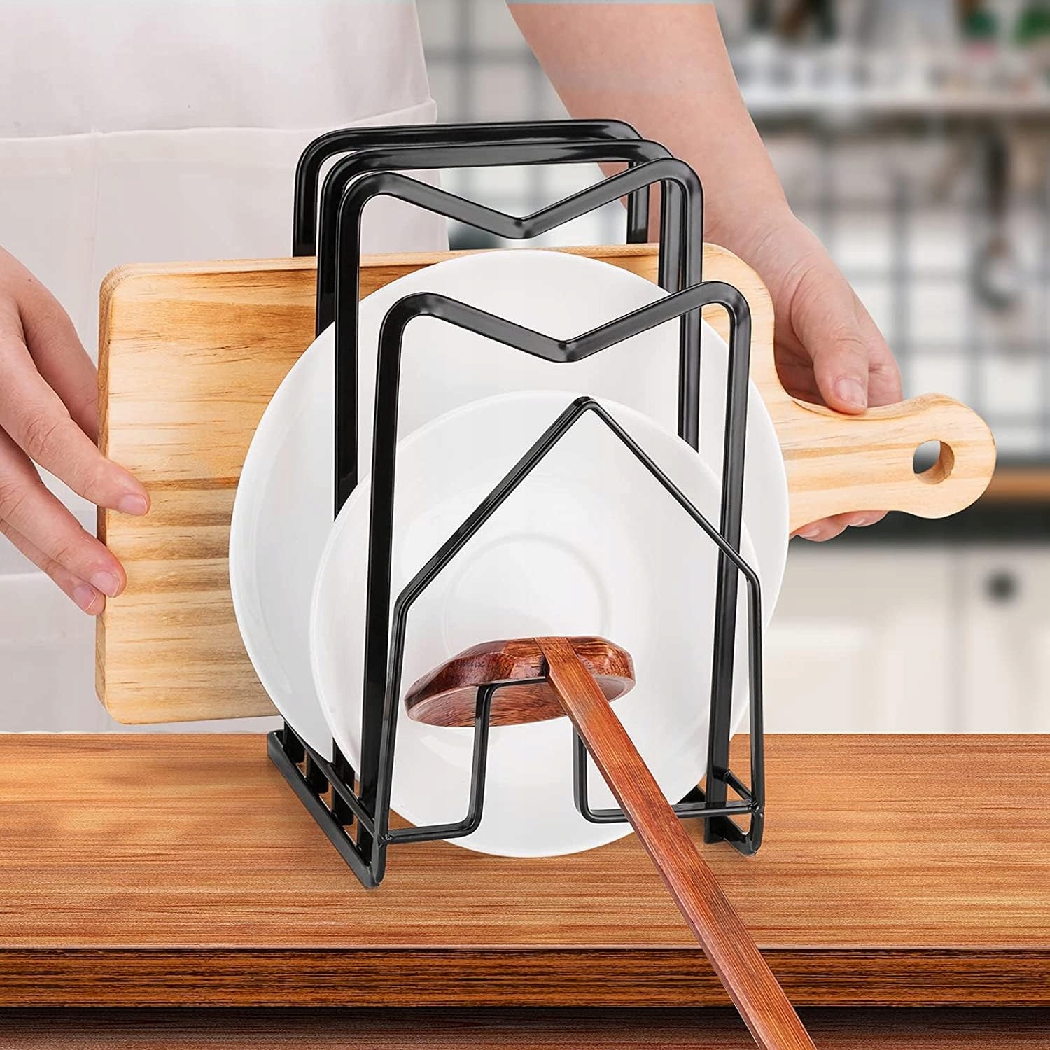 🍲🍲 Економія місця: завдяки своїй компактній конструкції тримач для обробної дошки підходить для кухні простори різного розміру. Незалежно від того, велика чи маленька ваша кухня, наш тримач для обробної дошки допоможе вам максимально використати наявний простір і організувати обробні дошки та кухонне начиння в одному місці, щоб ваша кухня була чистою та ефективною.