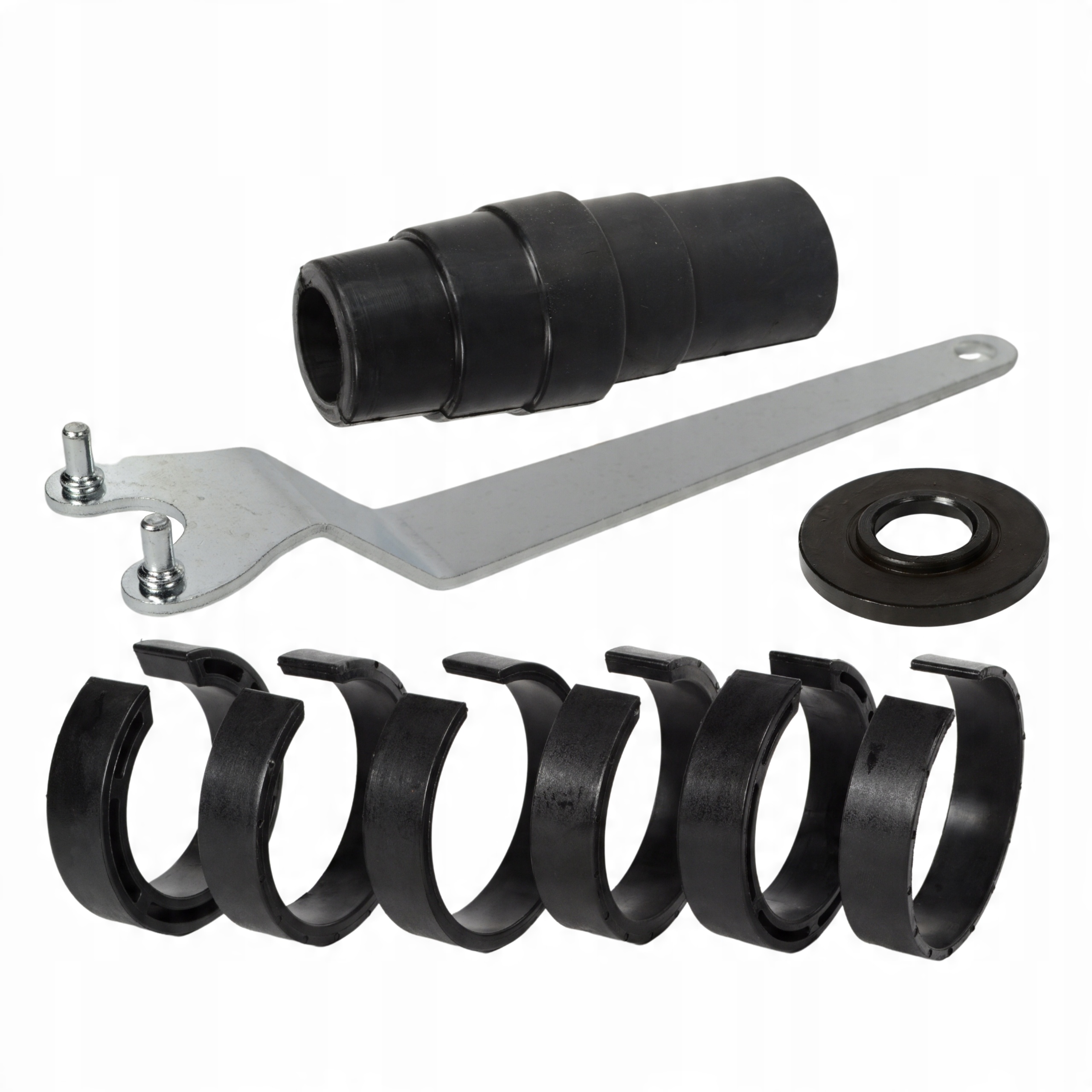 Цей продукт чорного кольору надійне рішення, що відповідає найвищим стандартам якості. У набір входять додаткові фланці різних розмірів, що дозволяє адаптувати кришку до шліфувальних верстатів діаметром 54, 57, 59, 60, 66 і 75 мм. Додатково в комплект входить редукція для шланга пилососа, яка дозволить ефективно відсмоктувати пил, зберігаючи робоче місце в чистоті. У комплект також входить надійний монтажний ключ, який спрощує установку та швидке зняття кришки.