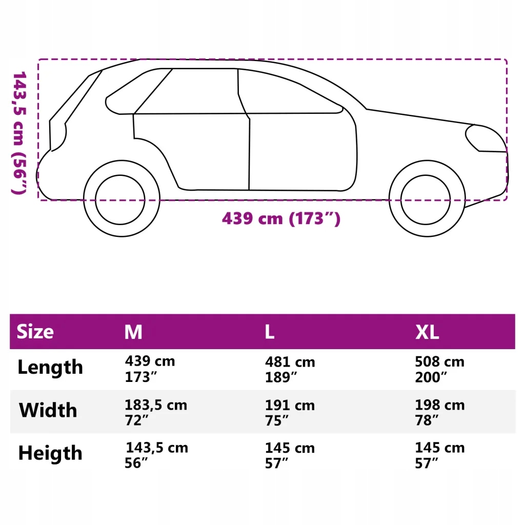- Перед покупкою виміряйте свій автомобіль ретельно, щоб вибрати потрібний розмір продукту. Ступінь, але це не повністю водонепроникний. Розмір: M (439 х 183,5 х 143,5 см (довжина x Ширина x висота))