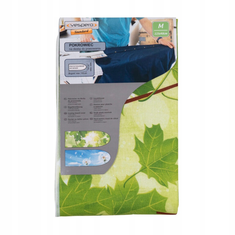 Вивчіть практичну та функціональну прасувальну обкладинку. Виготовлений з високої якості 100%бавовни покриття, гарантує відмінний прохід пари, що полегшує процес прасування. обкладинка з розмірами 125x40 см ідеально адаптується до більшості прасувальних дощок (максимум розмір плати - 115x32 см ).