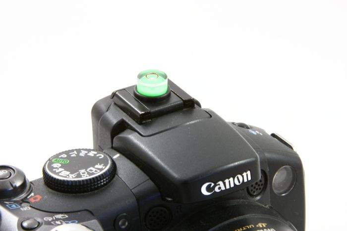 Ковпачок захищає гарячий башмак у камері, а мініатюрний рівень, встановлений на ковпачку, не займає місця.
