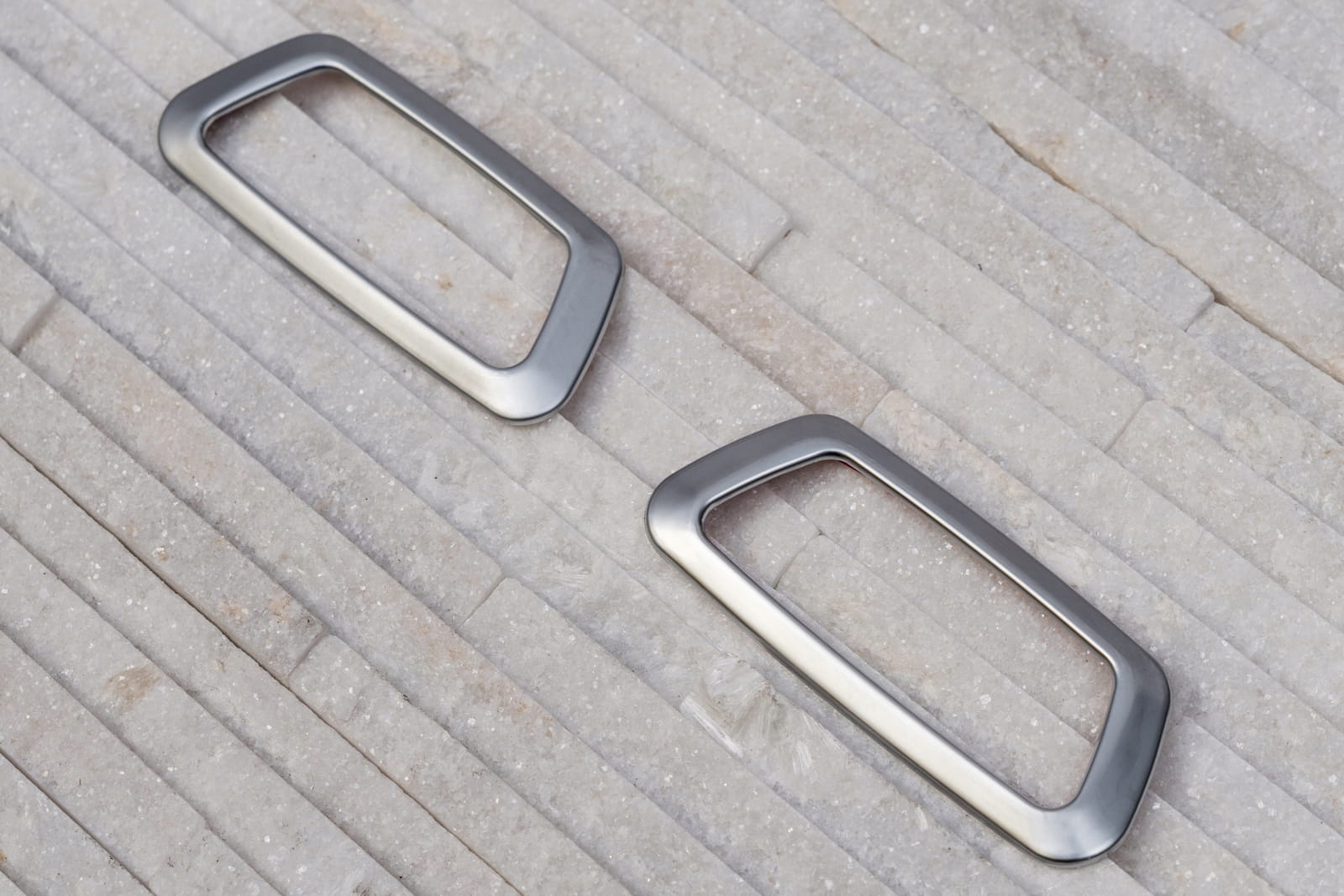 Стильні смуги підкреслюють форму легкої рами багажника. Поєднання дзеркального блиску хромованої поверхні з динамічною, гострою лінією накладок надає фарам стильне обрамлення, яке ідеально відповідає характерному спортивному стилю Mercedes GLC. Планки ідеально поєднуються з іншими елементами обробки Mercedes, завдяки чому їх використання дозволяє досягти цілісного, виразного стилю автомобіля.