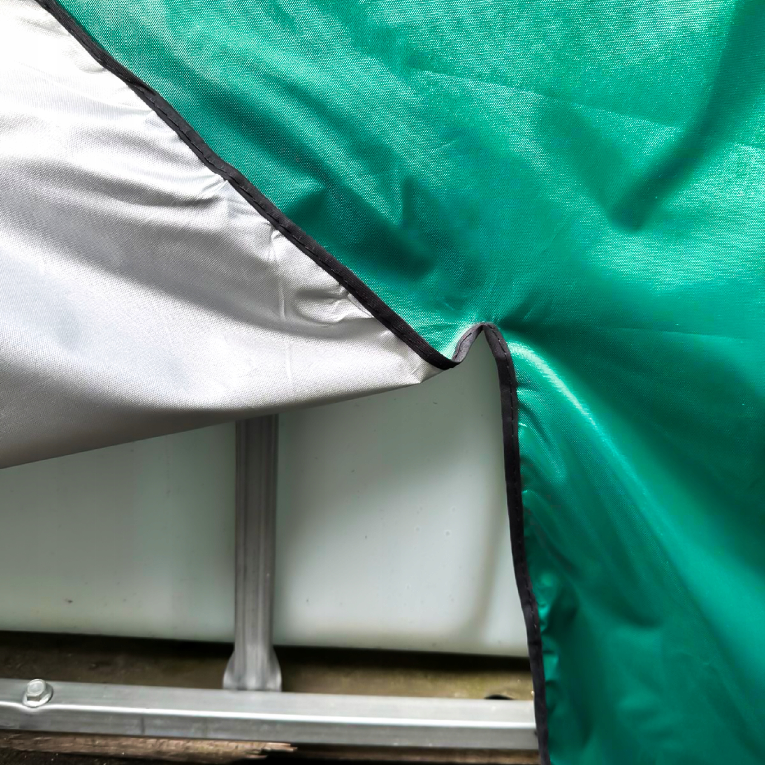 Захисна кришка виготовлена з високої якості, щільної оксфордської тканини, , яка характеризується водостійкою, міцністю та стійкістю . Завдяки цьому матеріал не тільки захищає резервуар від зовнішніх пошкоджень, але й запобігає проникненню світла всередині, що ефективно усуває умови, сприятливі для розвитку водоростей. Це також запобігає домішкам, такими як листя, пил та комахи, що ще більше збільшує його функціональність.