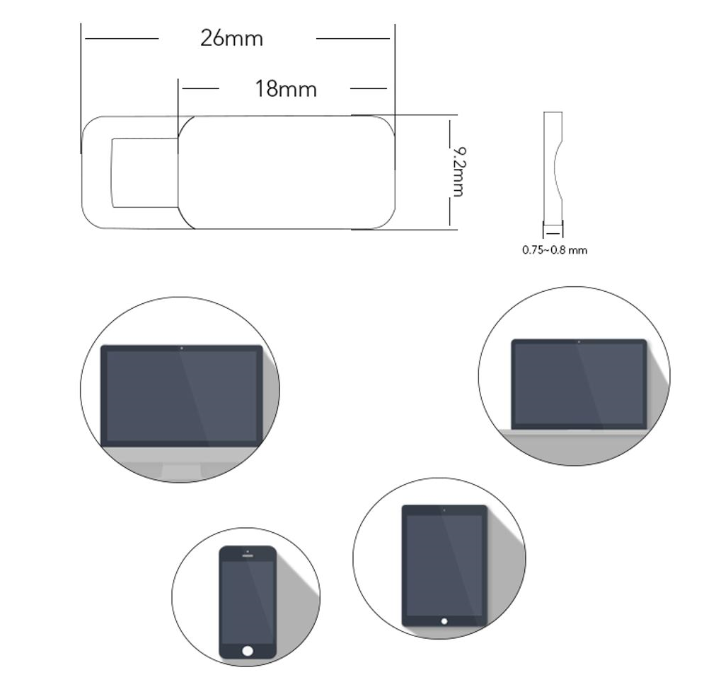 Зсувна кришка для камери ноутбука, розміри 26 х 18 х 9,2 мм.