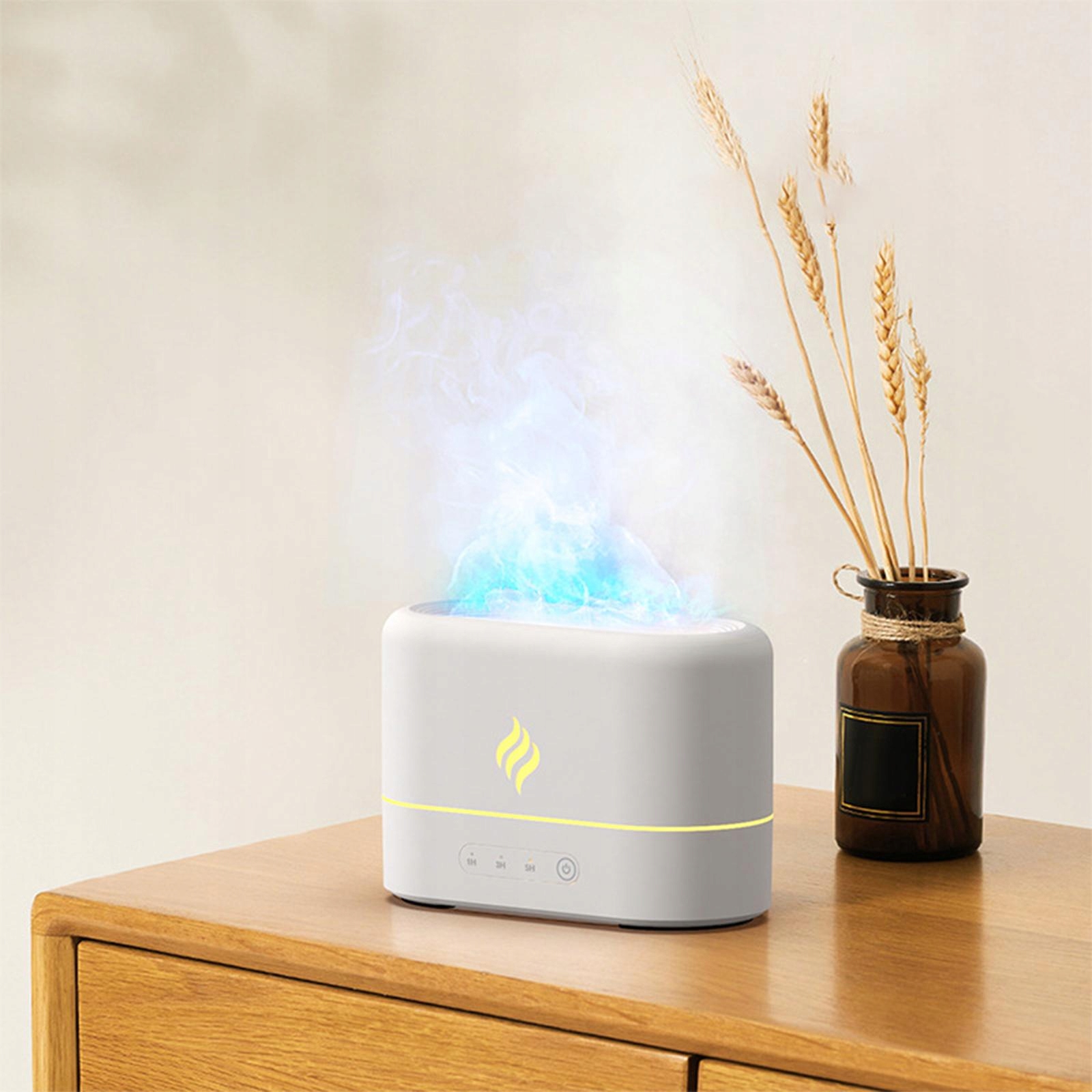 Ефекти полум'я: барвисті світлодіоди в поєднанні з туманом генерують реалістичний ефект полум'я, що нагадує спалювання полум'я в каміні. до сну. 20 -дб звороту не заважатиме вашому вивченню, роботі чи сну та надасть вам мирну компанію. Ємність 250 мл забезпечує достатню кількість туману. З вимірюванням часу: 1 год/3 год/5 год.