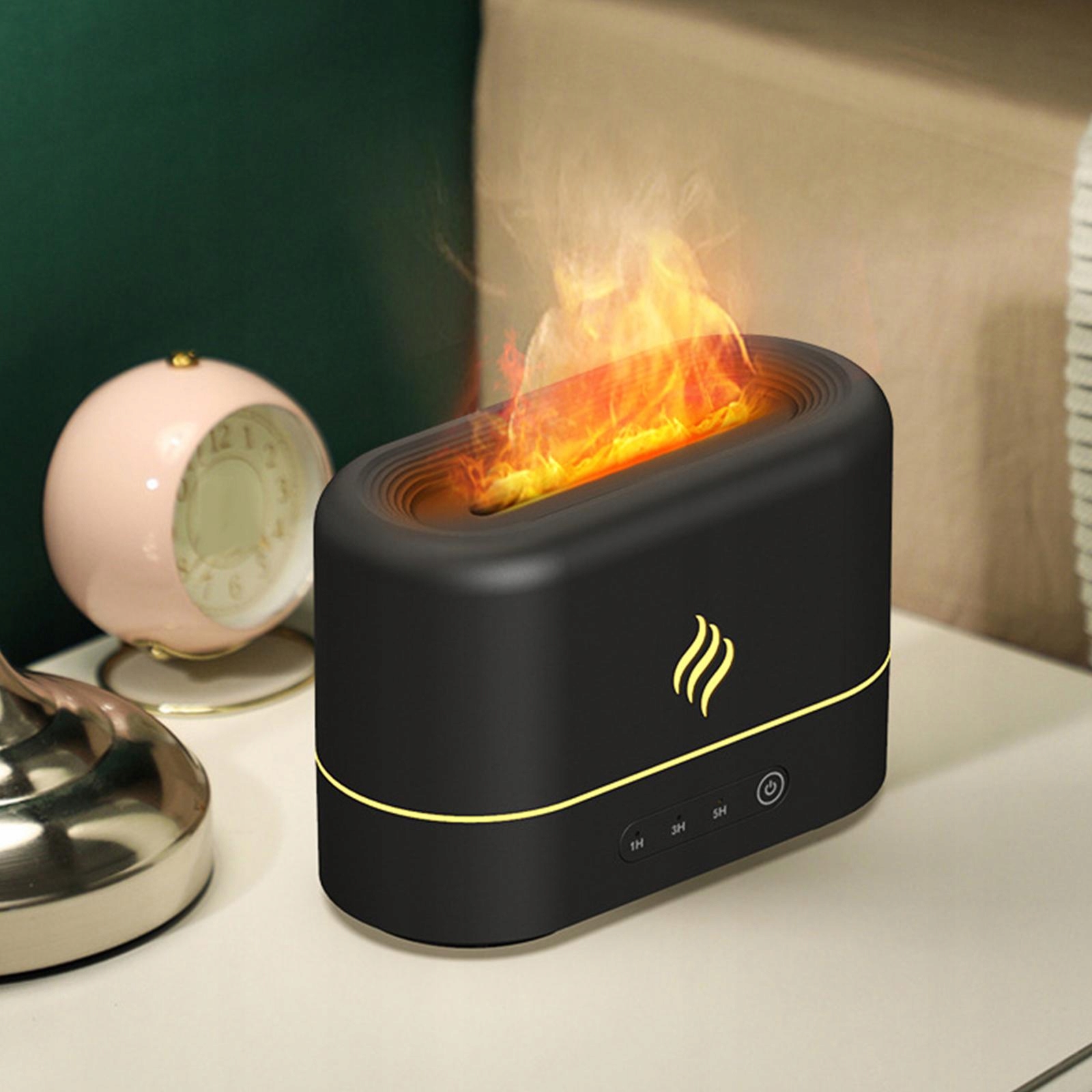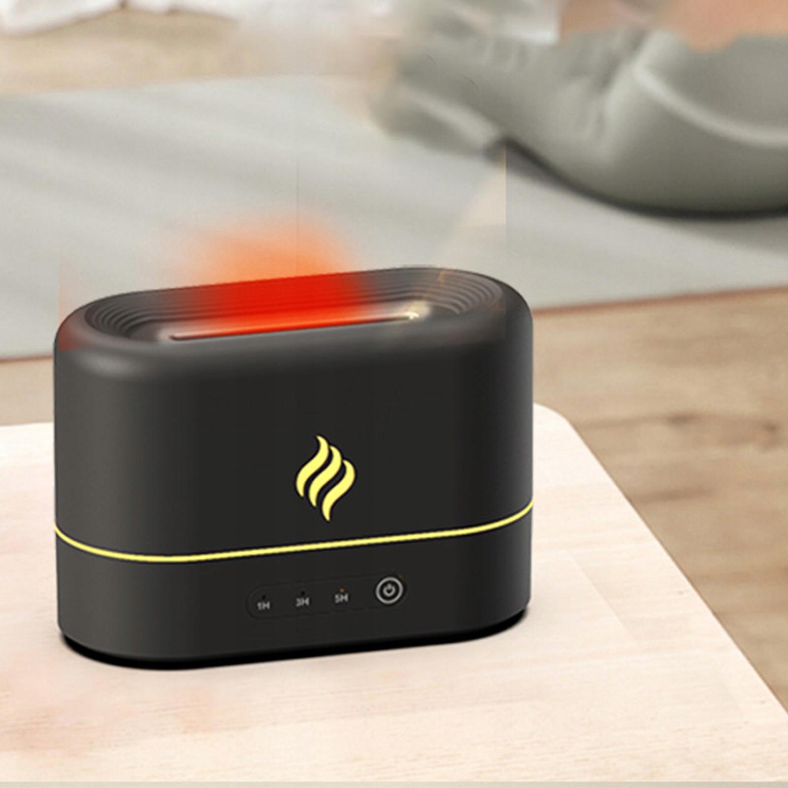 Ефекти полум'я: барвисті світлодіоди в поєднанні з туманом генерують реалістичний ефект полум'я, що нагадує спалювання полум'я в каміні. до сну. 20 -дб звороту не заважатиме вашому вивченню, роботі чи сну та надасть вам мирну компанію. Ємність 250 мл забезпечує достатню кількість туману. З вимірюванням часу: 1 год/3 год/5 год.