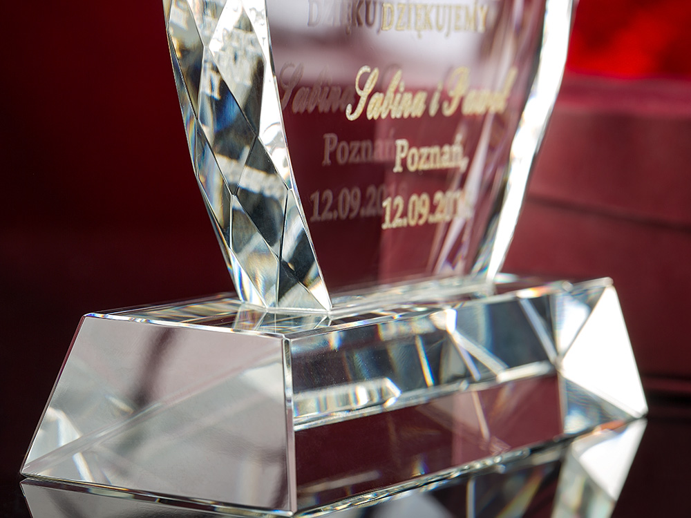 Красива подяка зроблена за допомогою технології лазерного гравіювання безпосередньо на предметі. Статуетка CRYSTAL виглядає чудово завдяки інноваційній формі, а завдяки вирізам створює незабутнє естетичне враження. Встановлений на міцну основу з такого ж матеріалу, які міцно з'єднані між собою, він неодмінно запам'ятається одержувачу. Ви більше ніде не знайдете такої високої якості. Крім того, гравіювання наноситься майстром вручну і дуже акуратно спеціальною фарбою. Позолота/срібло переливається на світлі та дає дивовижний ефект. До всього доповнює красивий бордовий чохол з бордовим атласом в якому статуетка виглядає ще красивіше, а позолота виділяється на тлі чохла. Можу зробити для вас - ПОДАРУНОК НА БУДЬ-ЯКИЙ НАВОД (весілля, гостини, хрещення, причастя, день народження, вісімнадцяти іменини, ювілей, річниця весілля, день матері та батька, день дідуся та бабусі, день Святого Валентина, день вчителя, тощо). b>