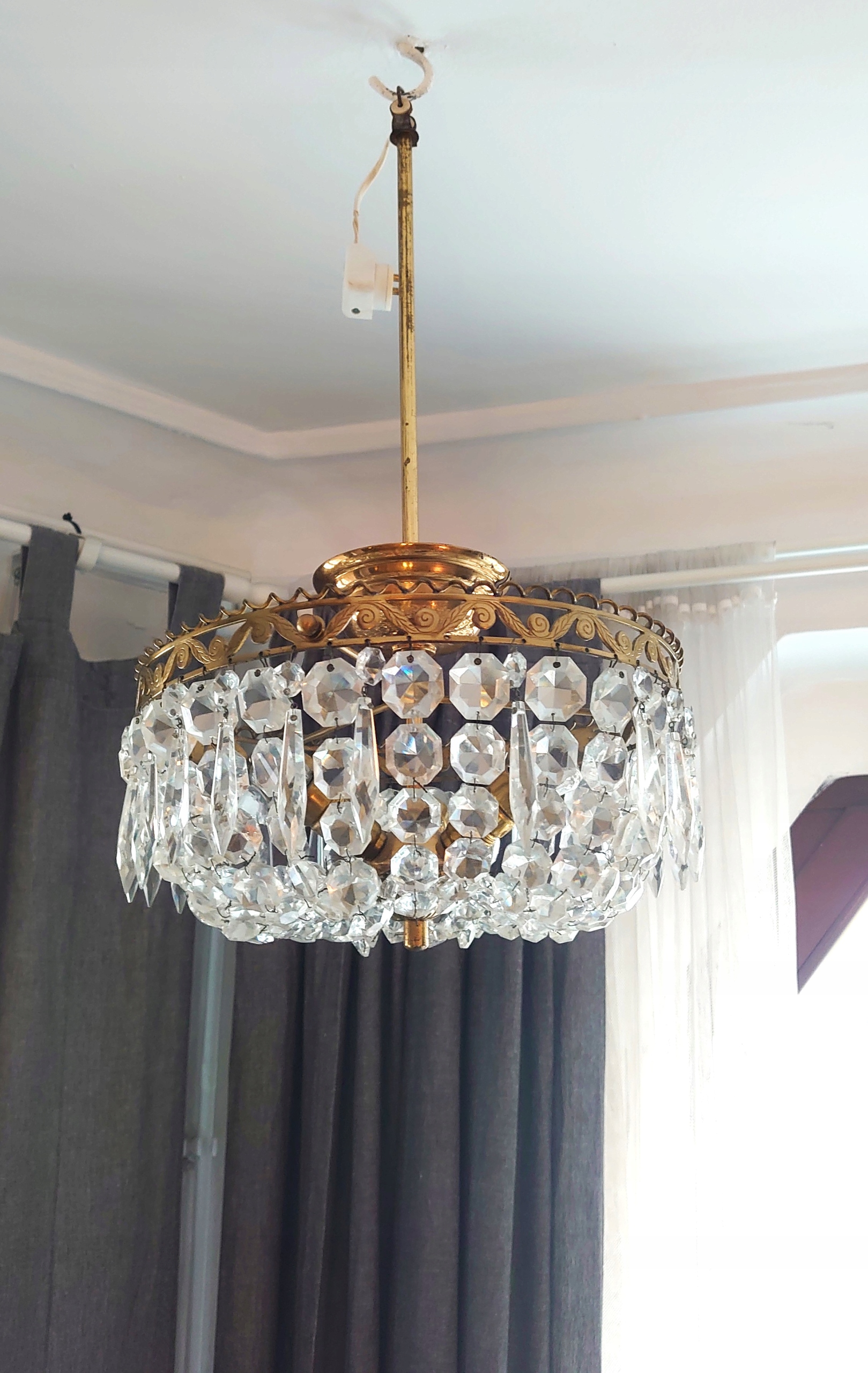 Кришталева люстра з позолоченої латуні