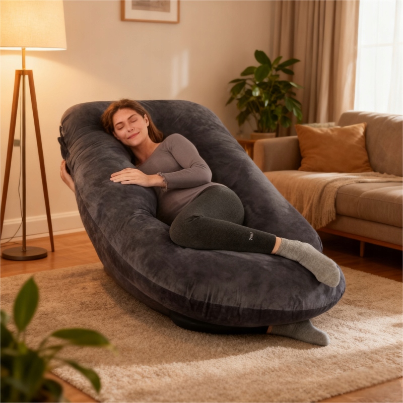 ☘️Ідеальний подарунок для мрії:М’яка подушка J-подібної форми для всього тіла – чудовий подарунок для майбутніх мам, людей, які страждають від болю в стегнах або спини, спортсменів, людей, які проходять фізіотерапію, і всіх, хто мріє про комфортний сон.