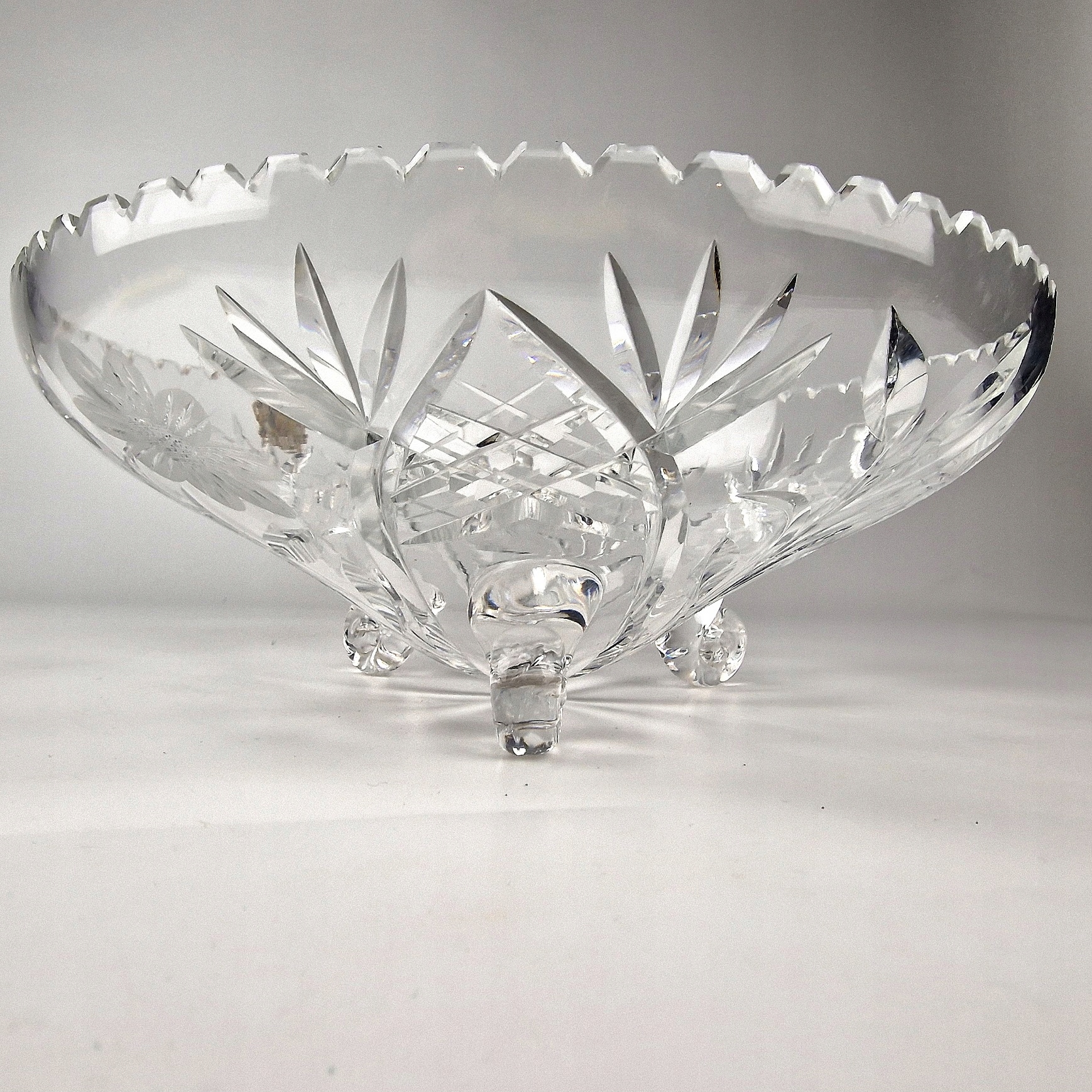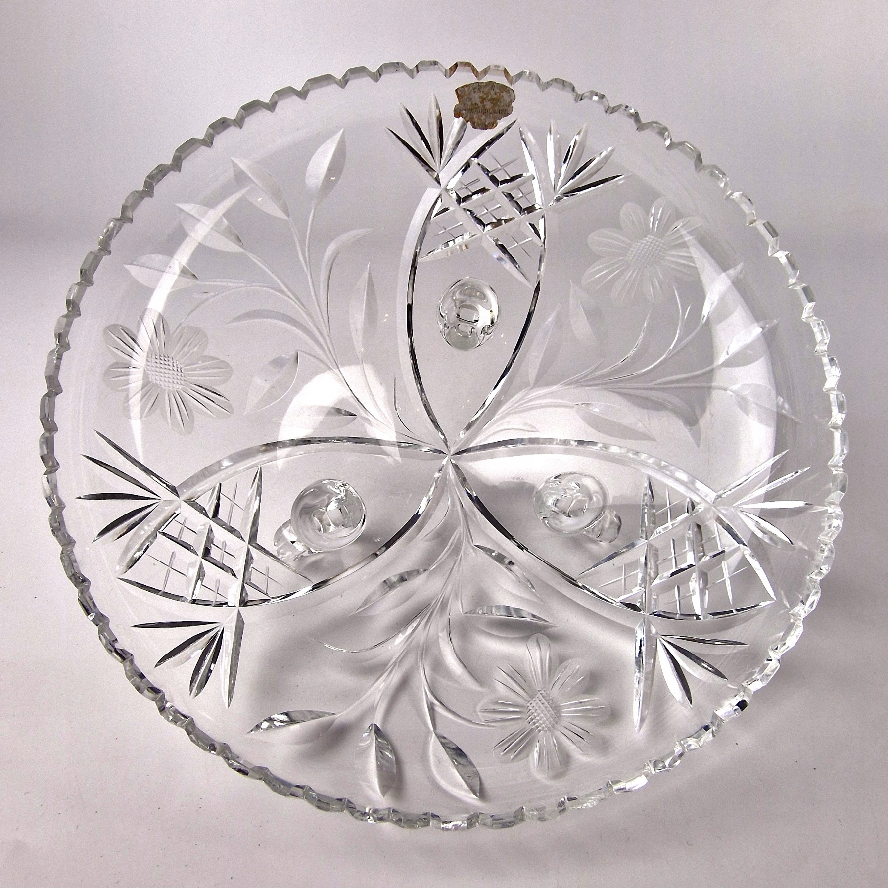 Кришталева стара миска для квітів на ногах равликів. Німеччина вінтаж