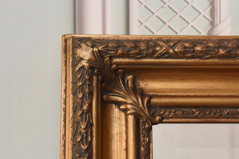 Елегантне кришталеве дзеркало в стилі модерн, обрамлене в багато декоровану дерев'яну позолочену раму. Прямокутна форма і декоративна форма ідеально підходять для класичних, палацових і стилізованих інтер'єрів. Великий розмір робить його ідеальним і як функціональне дзеркало, і як ексклюзивну прикрасу.
