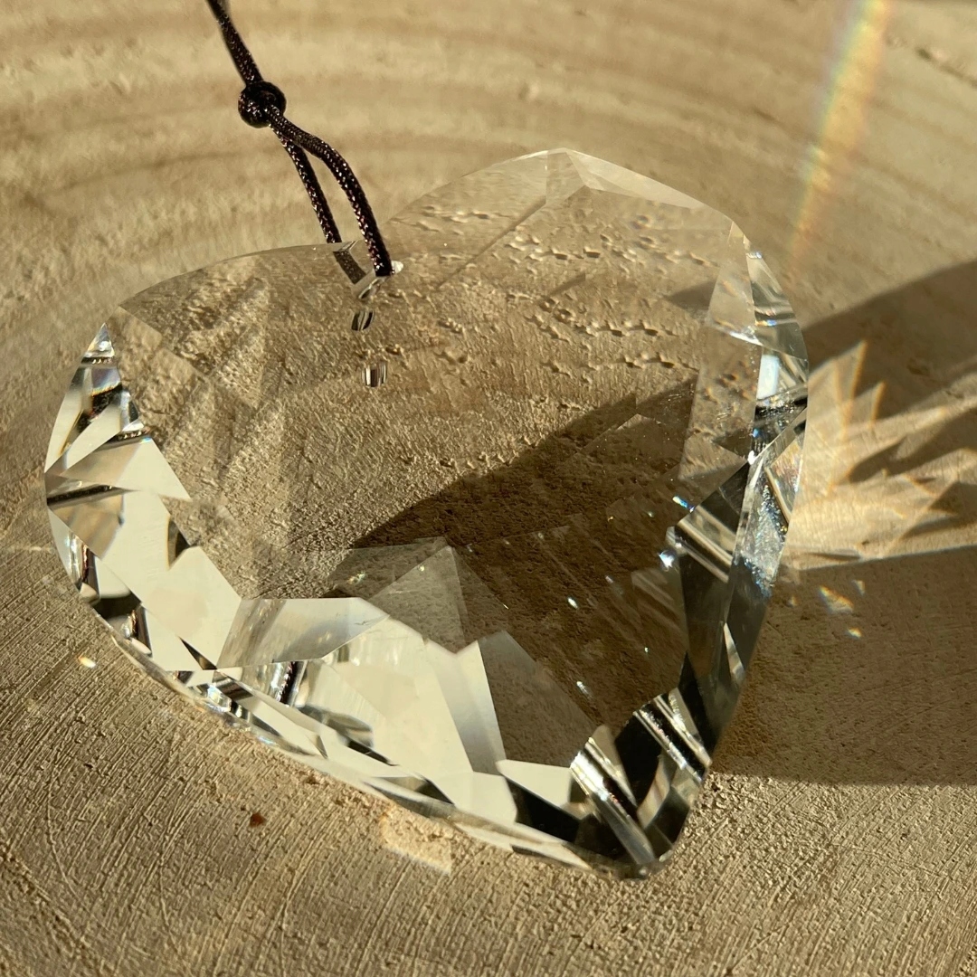 Елегантне кришталеве серце, яке вловлює сонячні промені та перетворює їх на ніжні райдужні відблиски. Він привносить в інтер'єр світло, спокій і гармонію, виступаючи символом любові та позитивної енергії.