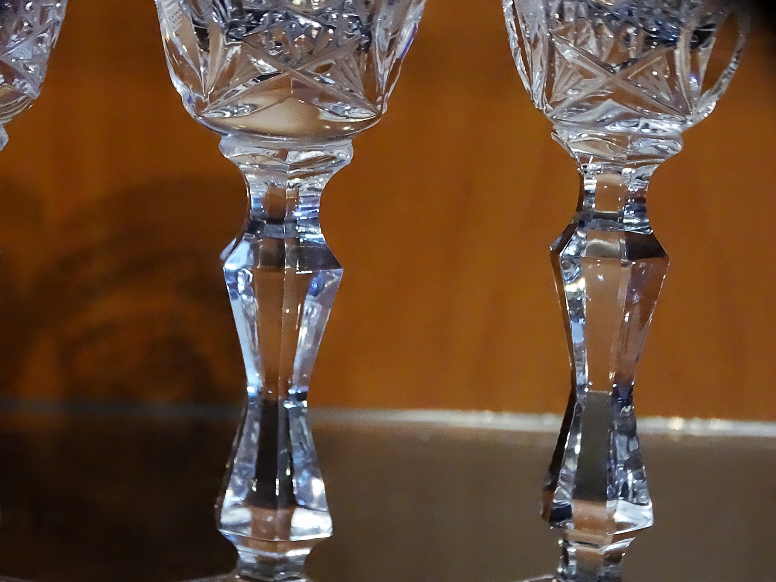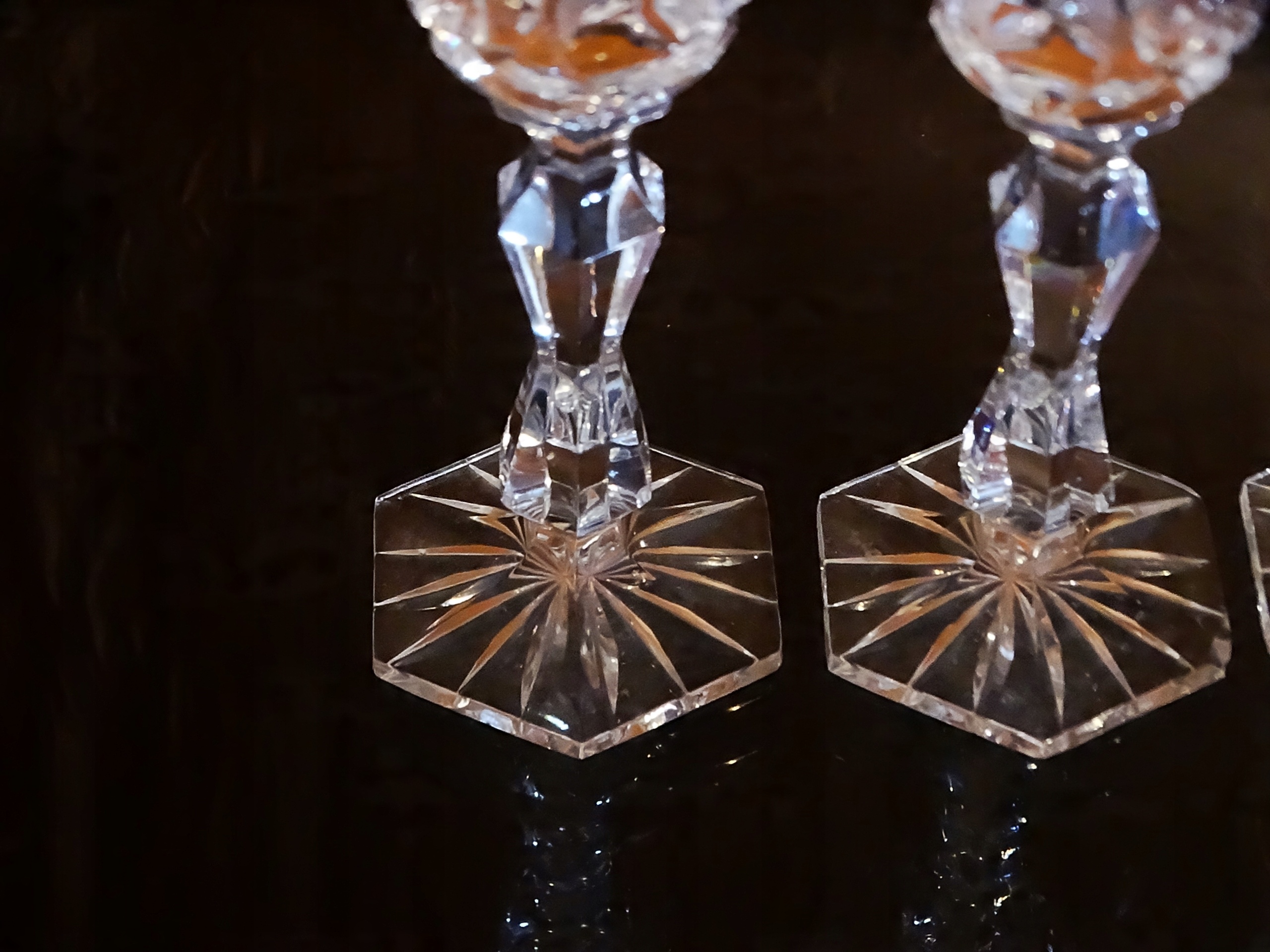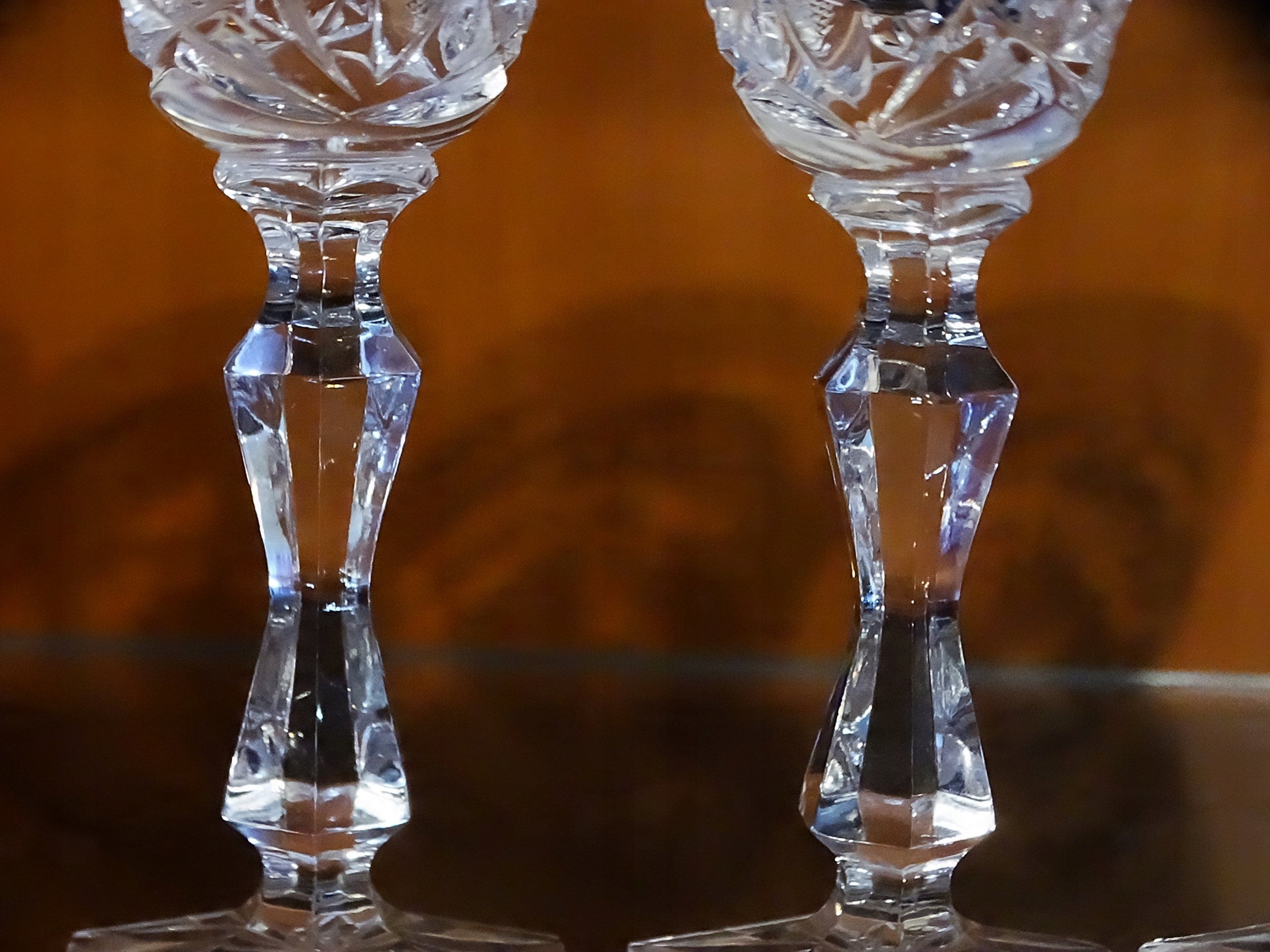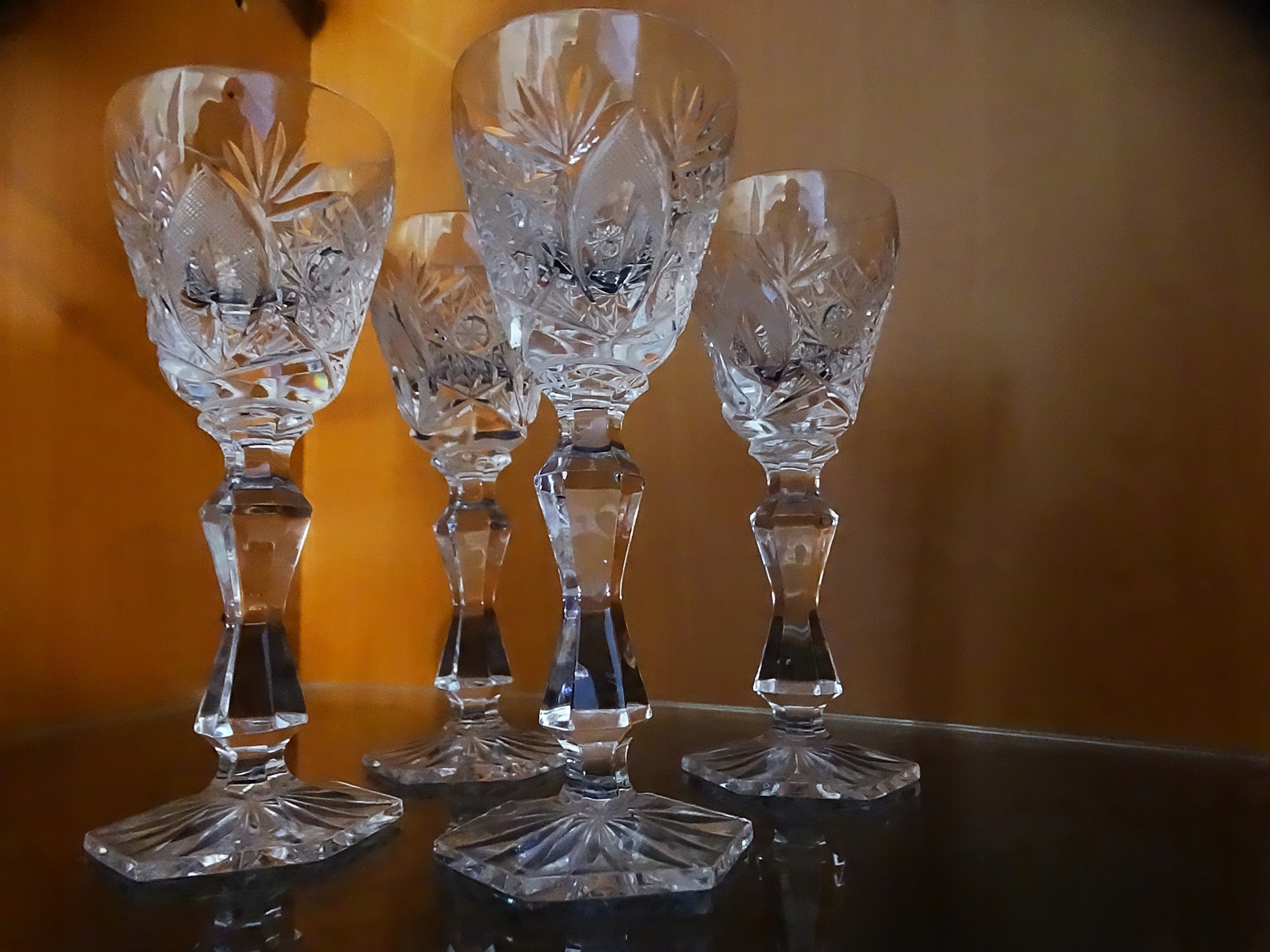 окуляри, що використовуються в дуже хорошому стані, як видно на опублікованих фотографіях - немає ознак використання (як нові). Насправді вони виглядають набагато красивішими та гідними, ніж на знімках. Кристалічні окуляри -це елегантні страви, які зазвичай використовуються для подачі спиртів високого відсотка, таких як горілка, лікери або настоянка. Їх історія сягає століттях, а їх популярність є результатом краси та довговічності кристала. У минулому кришталеві окуляри були символом розкоші та багатства, доступними лише заможним шаром суспільства. В даний час вони частіше зустрічаються, але вони все ще є цінним елементом посуду.