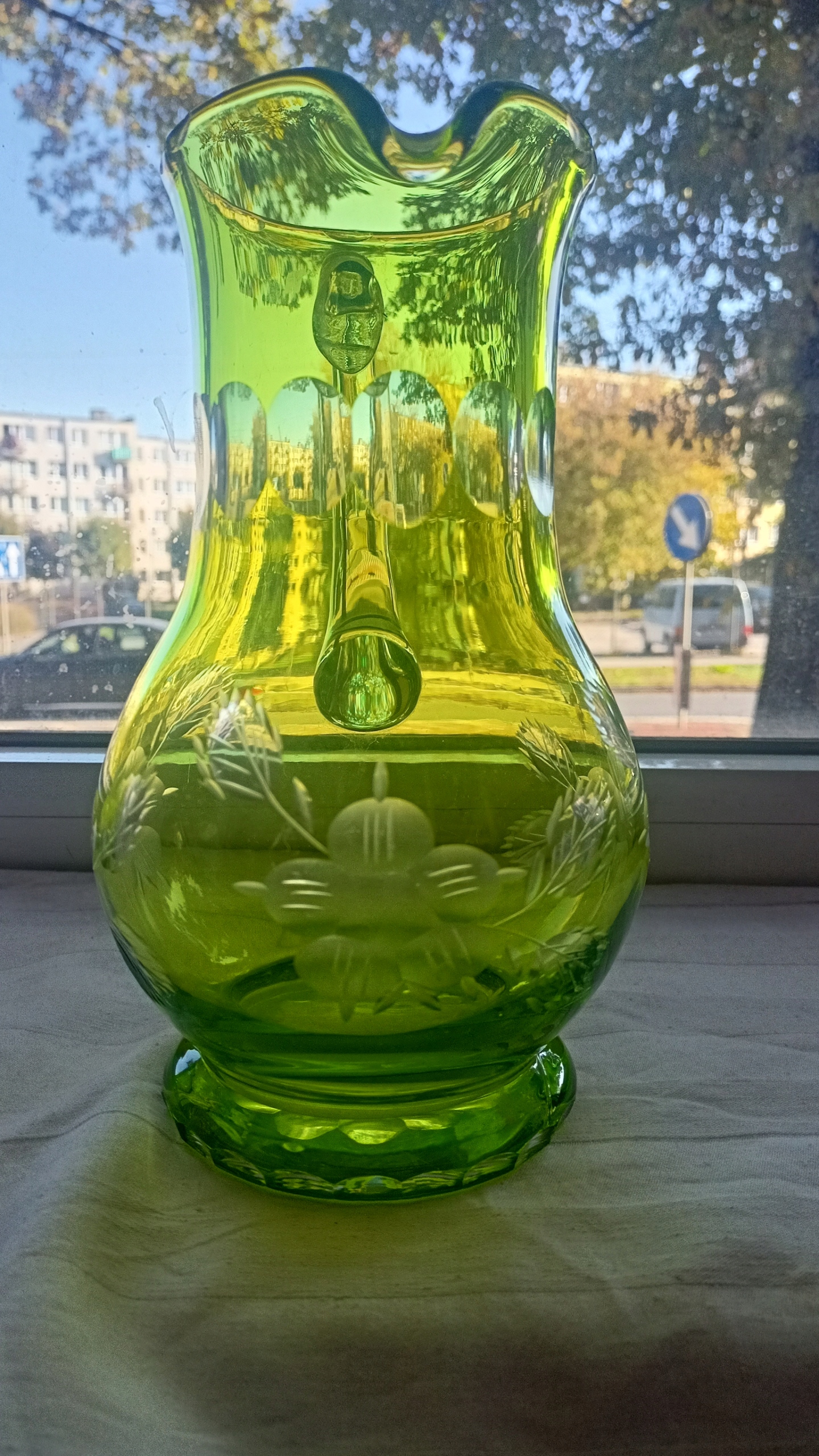 Кришталевий глечик відшліфований весняний зелень huta irena inowrocław