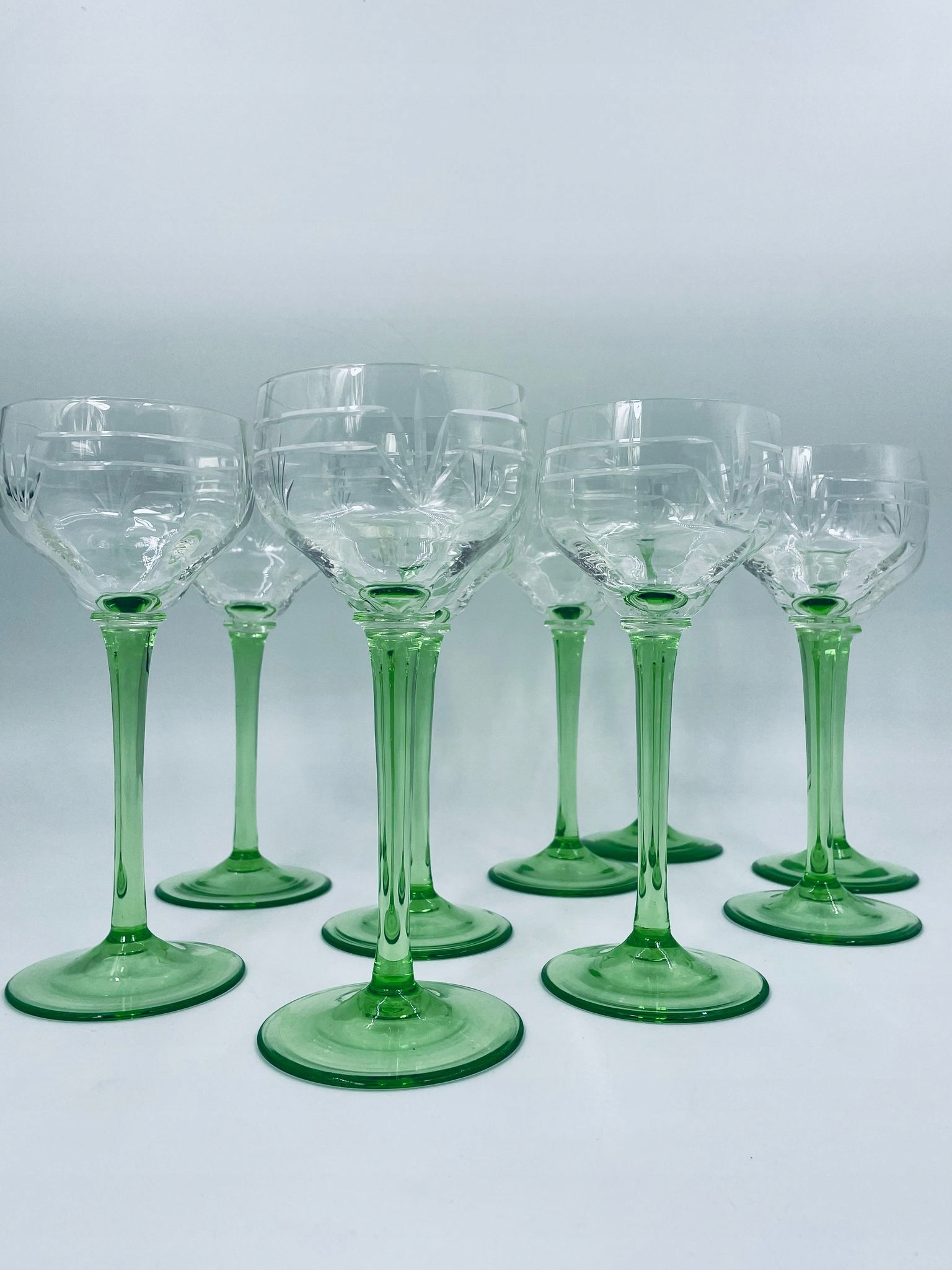 Кришталевий келих на зеленій ніжці в стилі модерн з витонченою огранкою