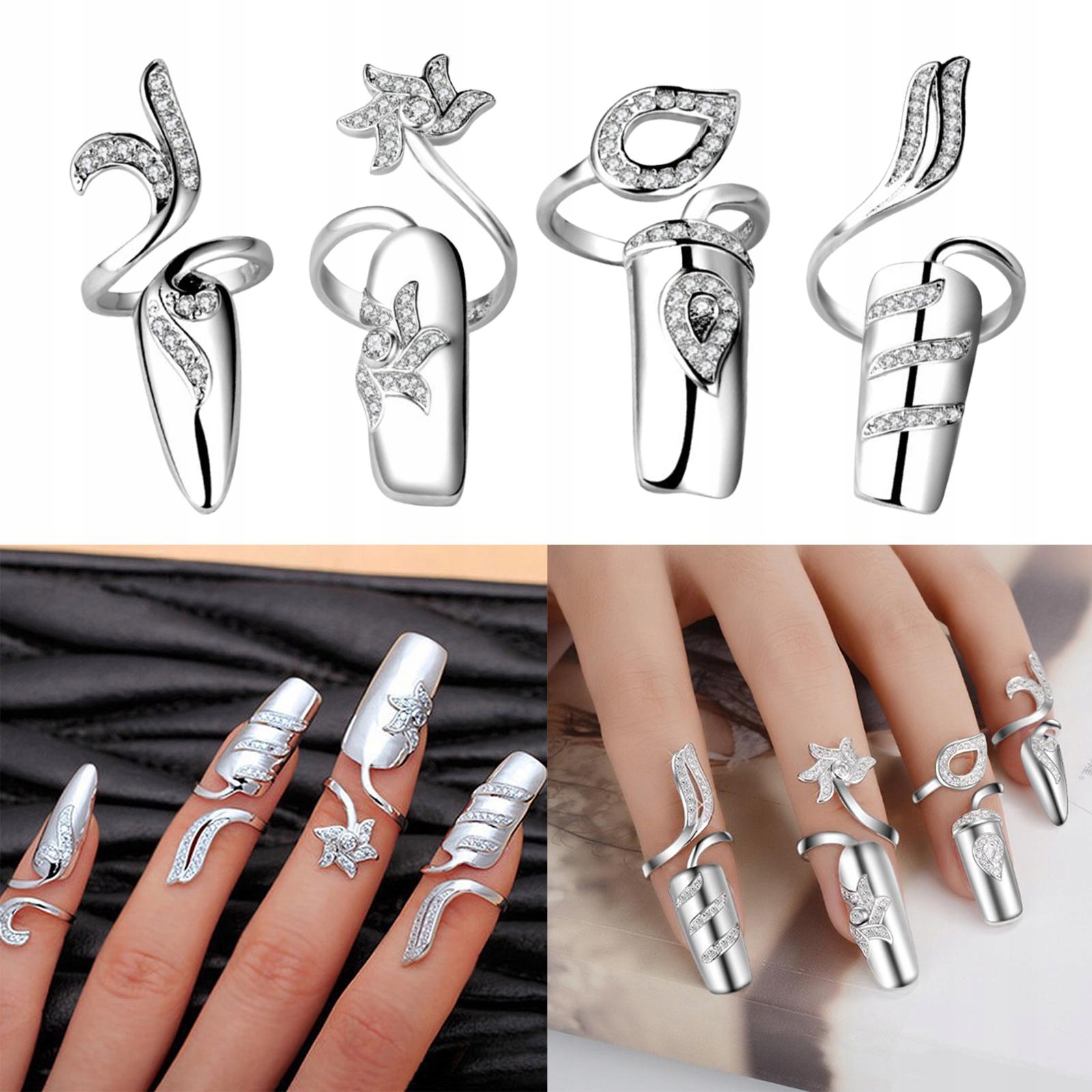 Кільце відкриття на верхній частині пальця з регульованих захисних кілець з гірського кристала на срібних нігтях