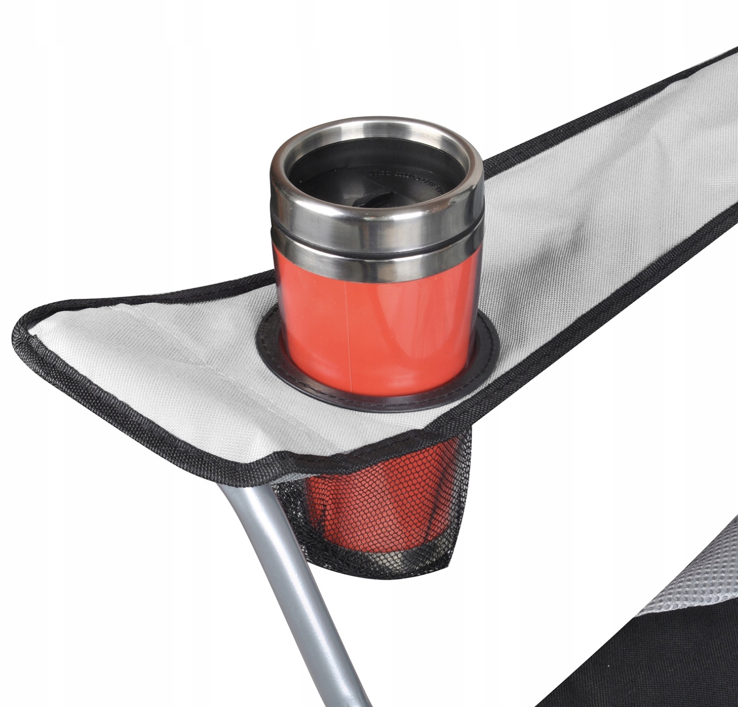 Рибальський стілець був розроблений для максимального комфорту, оснащеного регульованими підлокітниками, які можна легко адаптувати до індивідуальних потреб. Один з підлокітників містить практичну чашку або може, щоб ви могли комфортно утримувати напій під рукою під час риболовлі або відпочинку на відкритому повітрі.