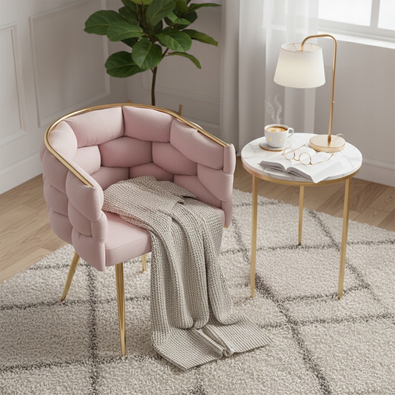 ✅ Універсальність використання - Завдяки своїй естетичності та комфорту крісло ідеально підходить для домашніх приміщень - вітальні, спальні або туалетного столика - а також для елегантних комерційних інтер'єрів, таких як виставкові зали, бутіки, зали очікування або салони краси.