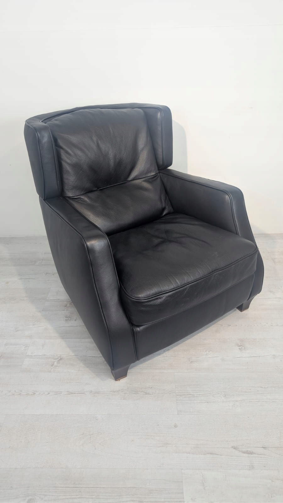 Комфортне крісло Amadeus від Natuzzi Italia. Ці меблі відрізняються високою якістю виготовлення та довговічністю, виготовлені з натуральної шкіри чорного кольору. Крісло стійке і стійке до механічних пошкоджень. Рекомендую як практичне та стильне доповнення до дизайну інтер’єру.