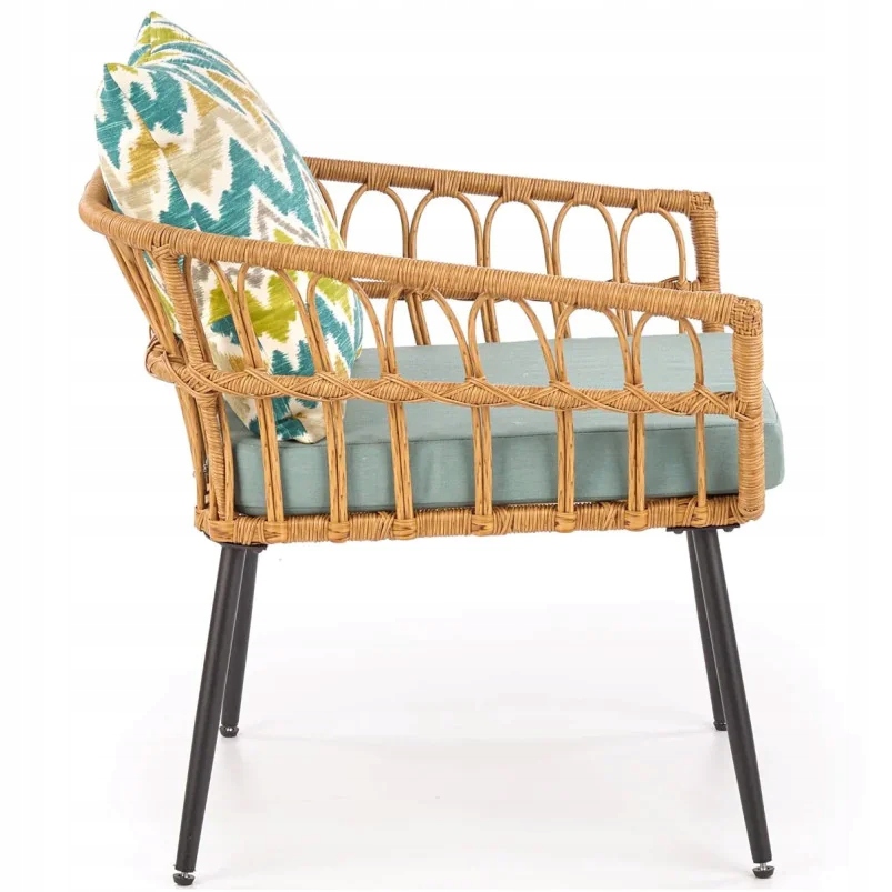 Крісло для вітальні Boho Garden з ротанговими металевими чорними ніжками ORGANA 1S сірий ротанг Халмар