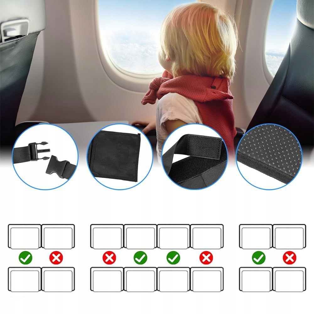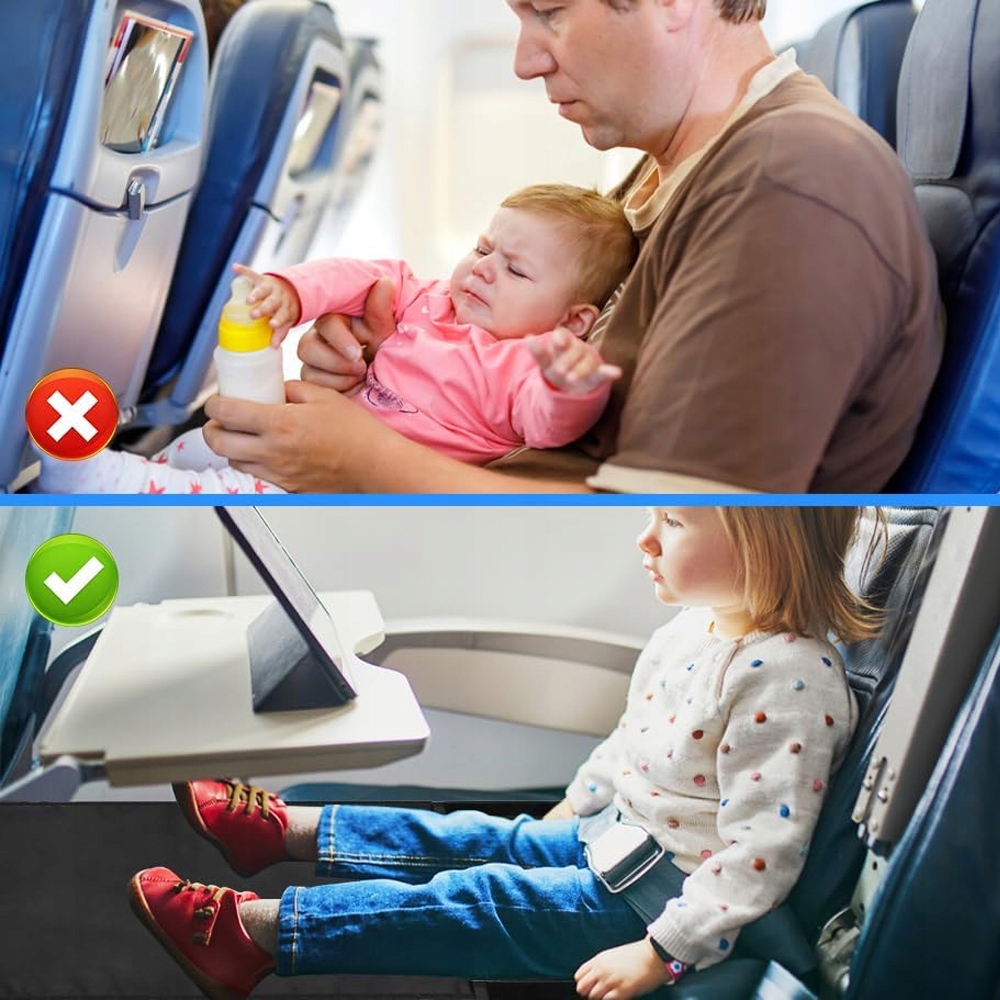 ✅ Універсальне застосування - Килимок підходить для більшості сидінь біля вікна або в середині літака (не підходить для крісел біля проходу або аварійних місць). Його можна використовувати як підставку для ніг, але не як сидіння для повної ваги дитини.