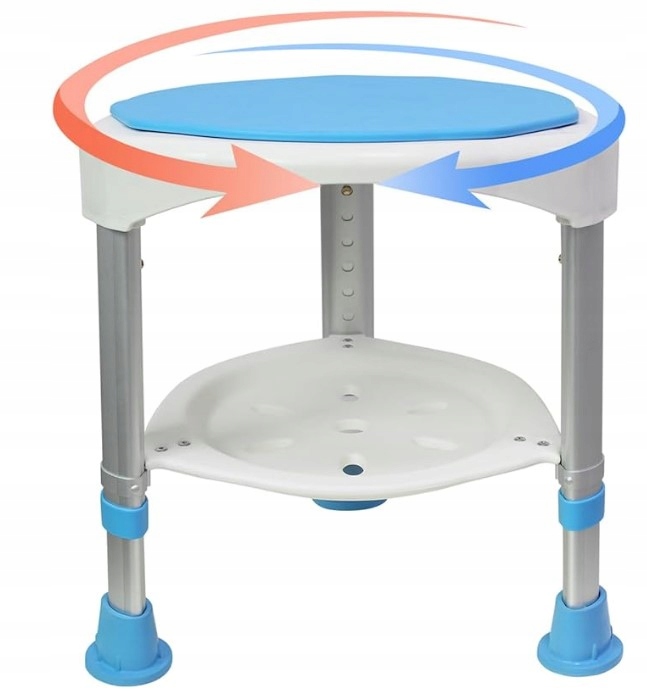 - Практичний і зручний – це крісло для душу можна повертати на 360° і регулювати по висоті від 45 см до 57 см, для різних потреб. Внизу сидіння є полиця для туалетного приладдя.