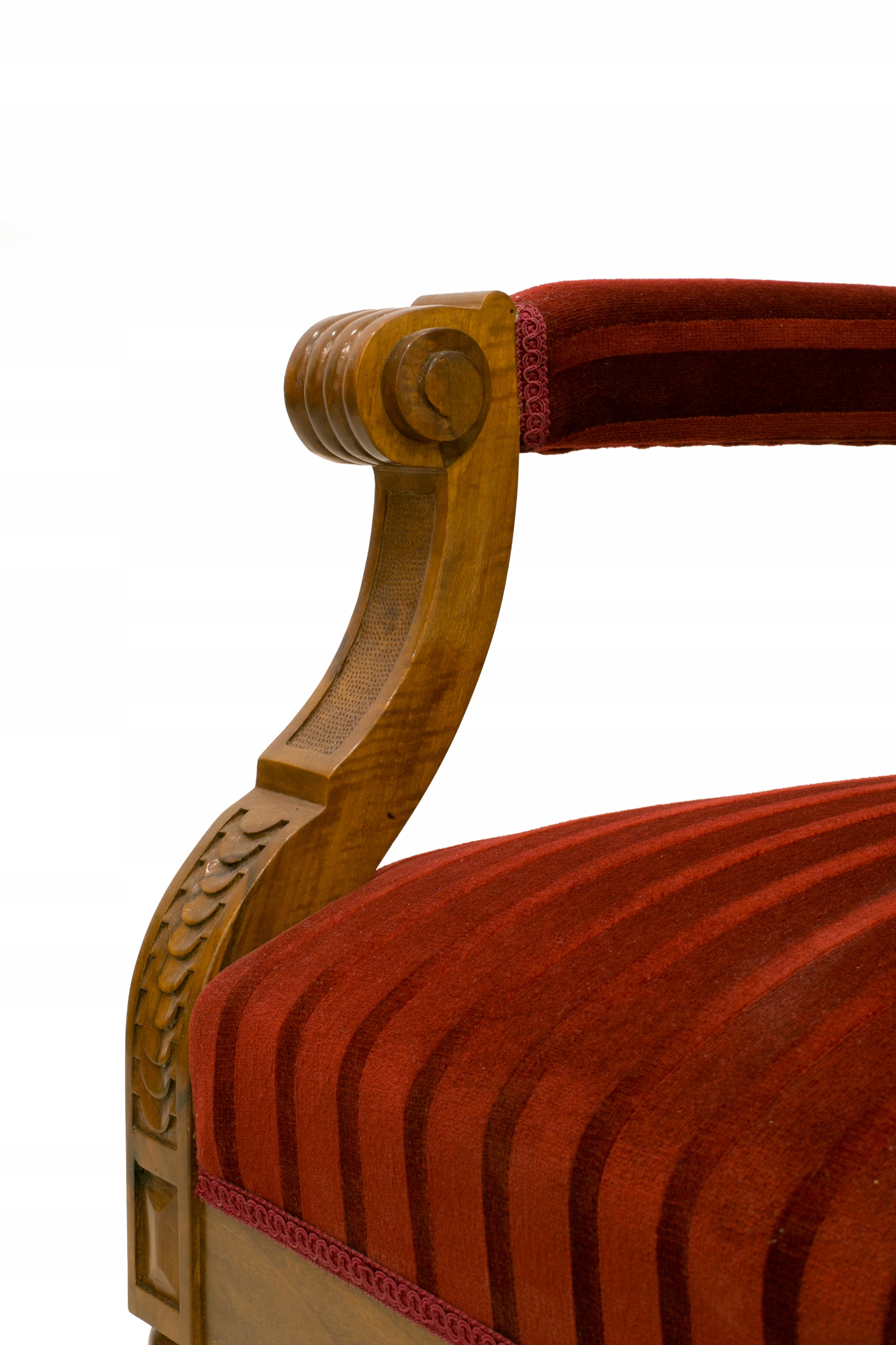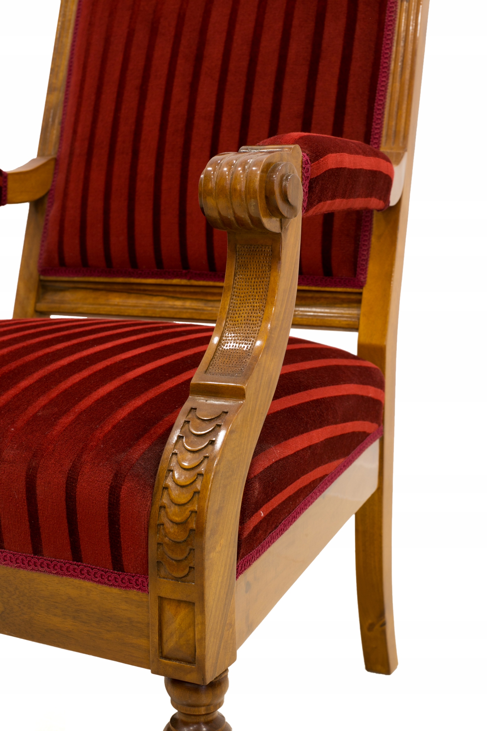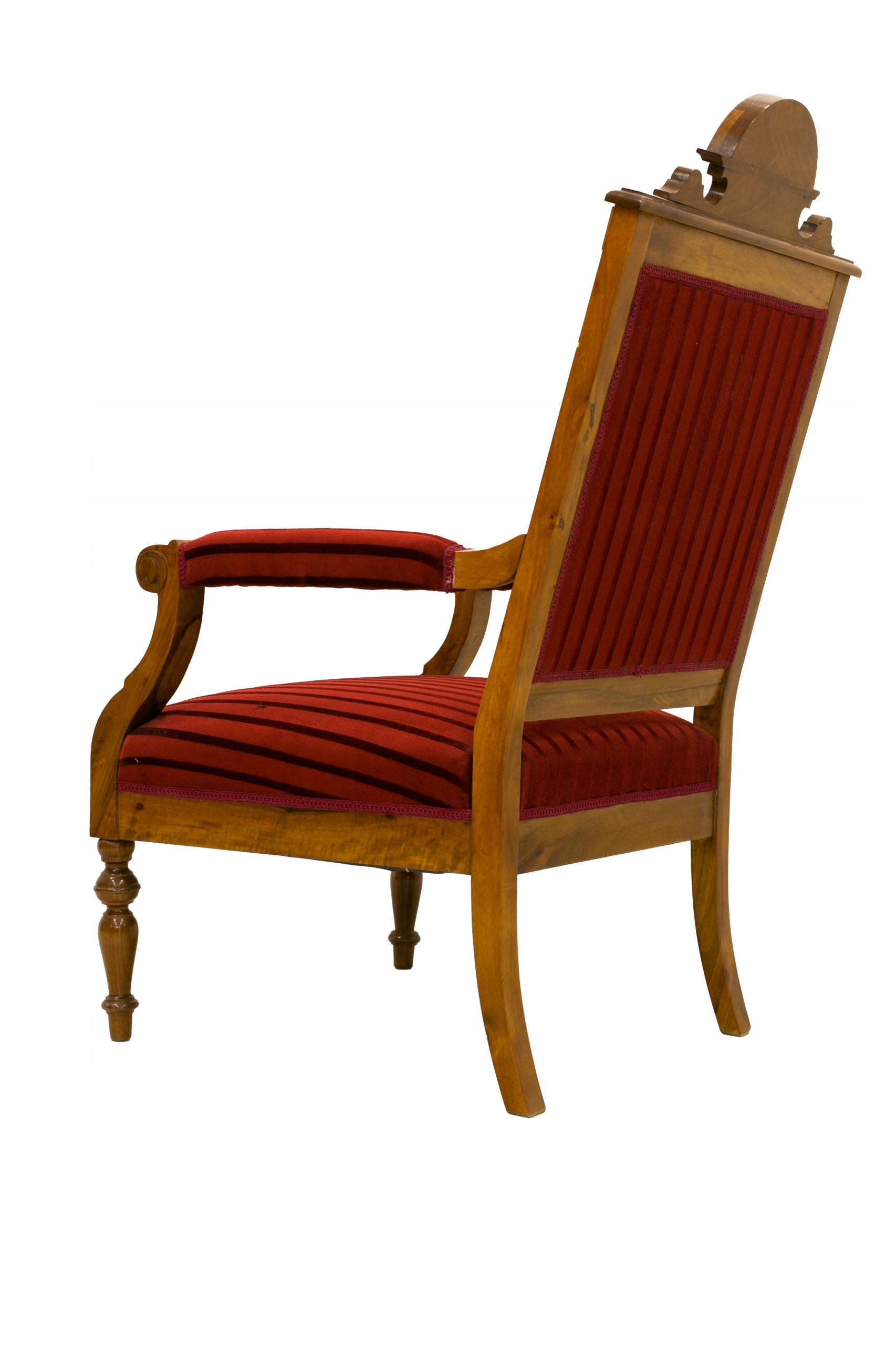 Вірно відтворений копія крісла, яке було вироблено в 1880-1900 роках. Меблі виготовлені з увагою до кожної деталі, мають елементи ручного різьблення, поверхня оброблена поліроллю, яка, крім чудового візуального ефекту, захищає та доглядає за деревиною. традиційна оббивка на пружинах, все виконано відповідно до даної епохи.
